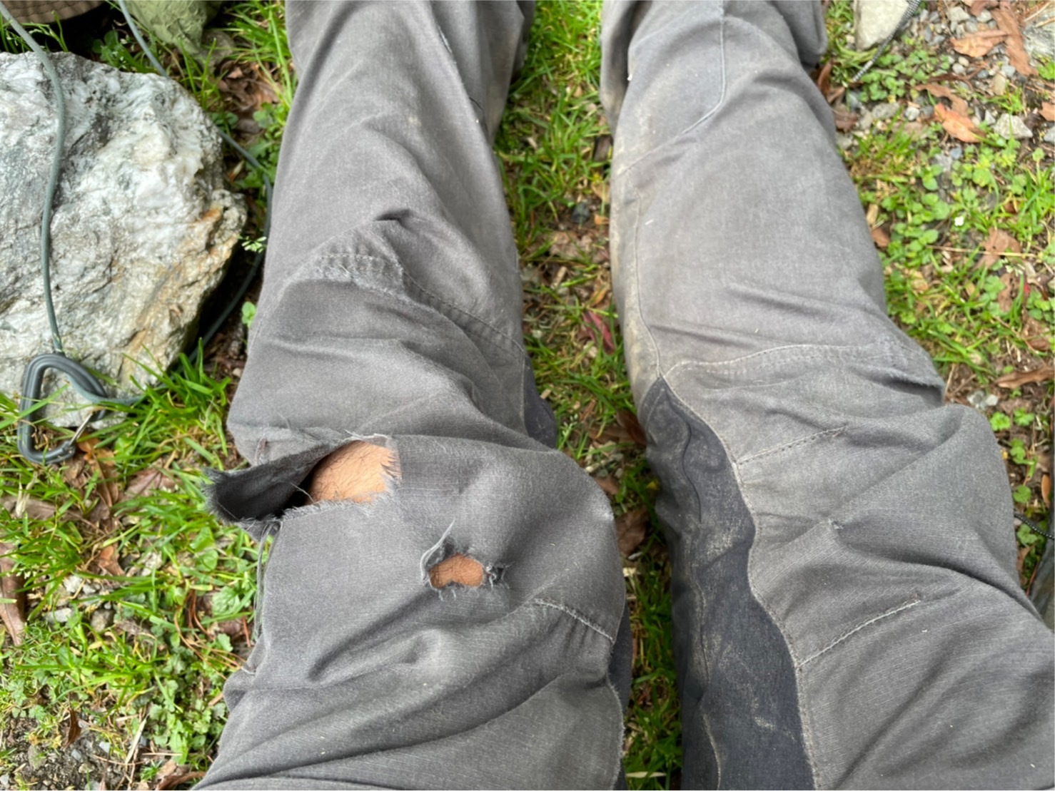 強韌的小狐狸登山褲因連續艱困路線造成破損