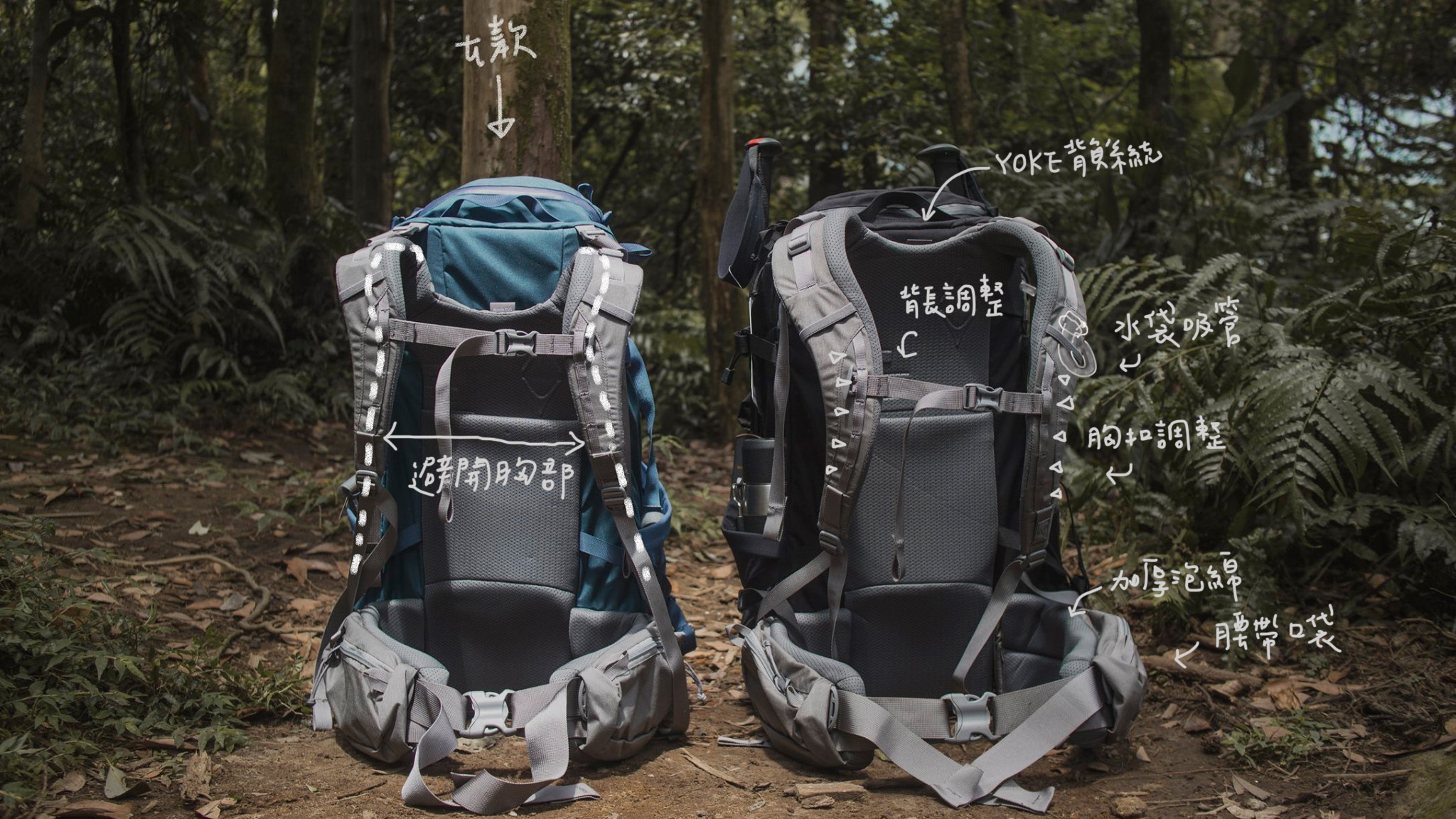 女款的肩帶有避開女性胸部的貼心設計,