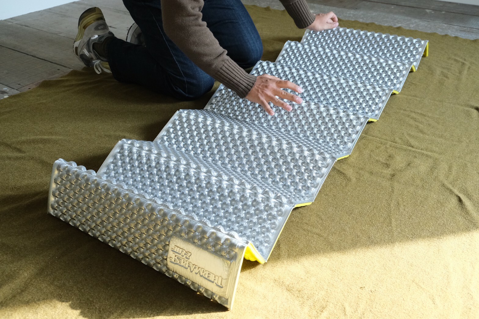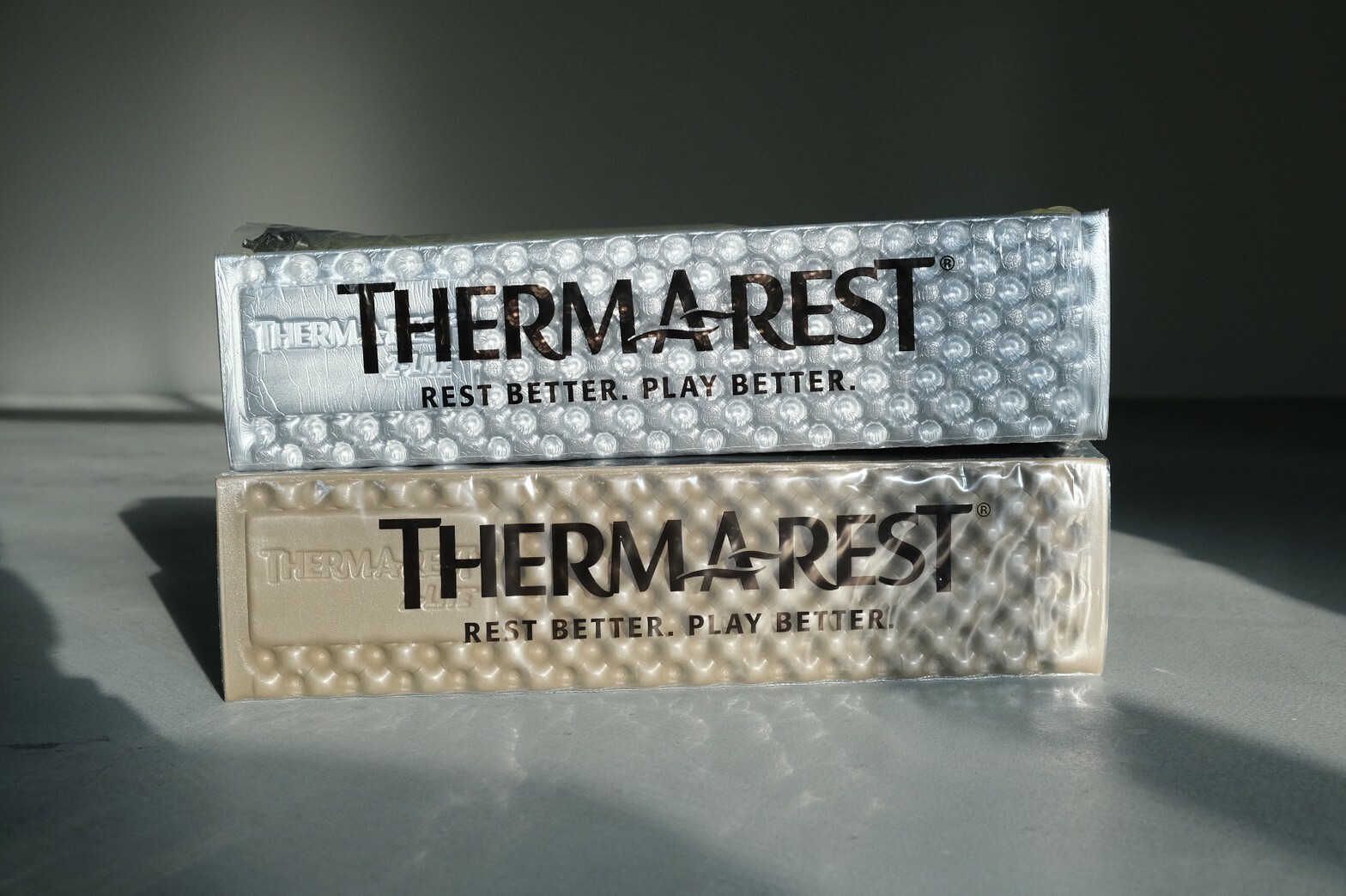 左為Therm-a-Rest的泡棉式睡墊,因為長得像裝雞蛋的盒子,因此又被稱之為蛋殼睡墊。