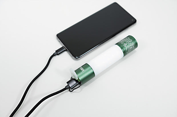 除了能夠兩級調整光強度外,您還可以選擇燈籠的色溫以配合氣氛。您也可以將其連接到市售的頸帶或登山扣上。緊急情況下,也可以當作手機電池使用。