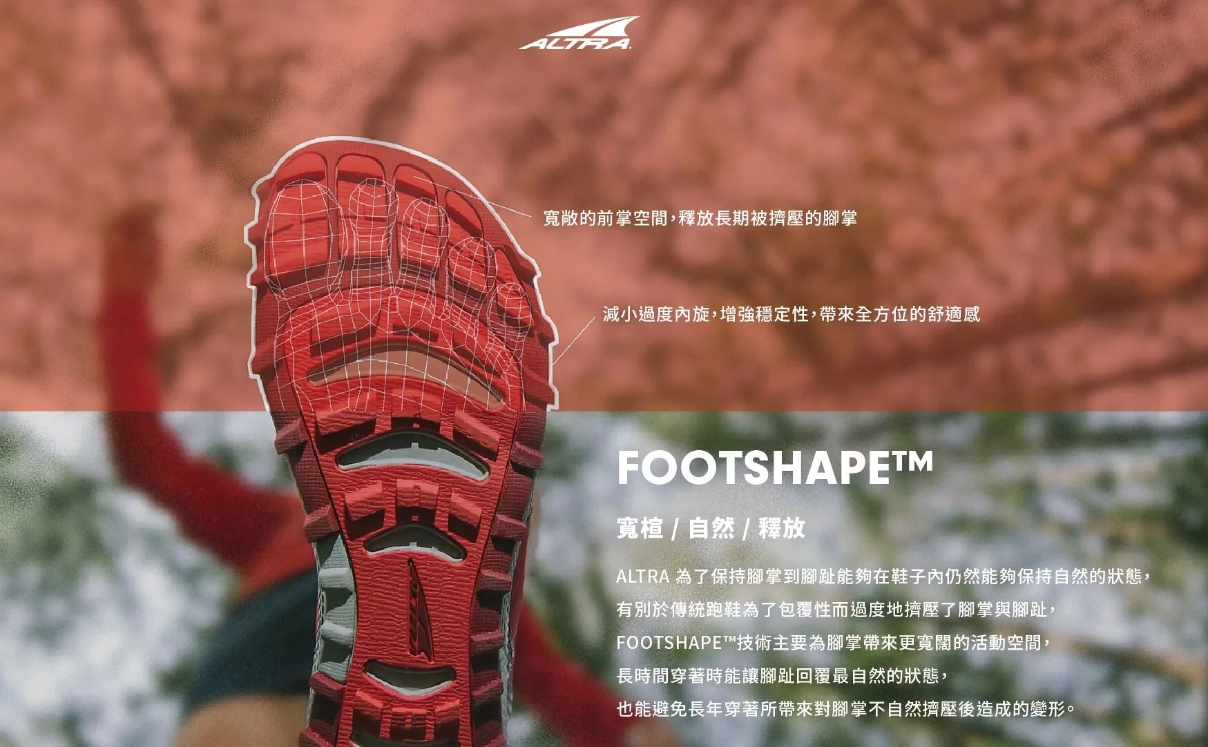 FOOTSHAPE™有著史無前例寬廣的鞋楦,就是要讓腳指頭自由,因為他是增加靈活、平衡的好幫手,也能有效的減少水泡、足底筋膜炎發生的可能性。