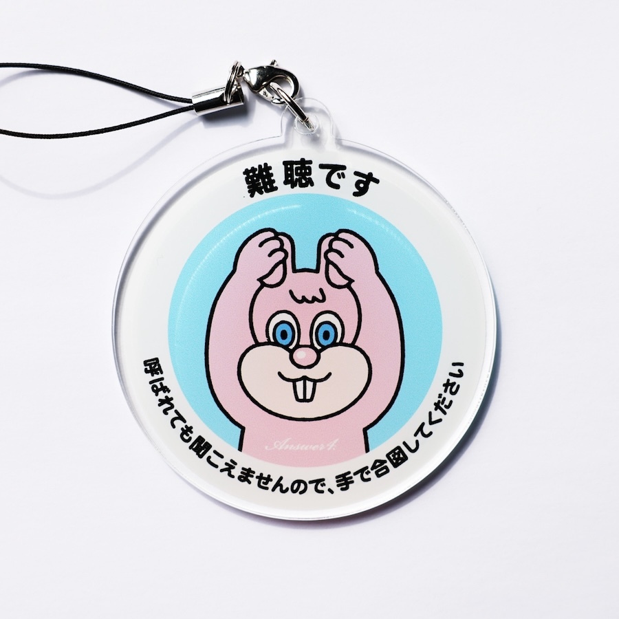 插畫由 Jun Oson 先生繪製。配戴這個鑰匙圈的人是聽障人士。
