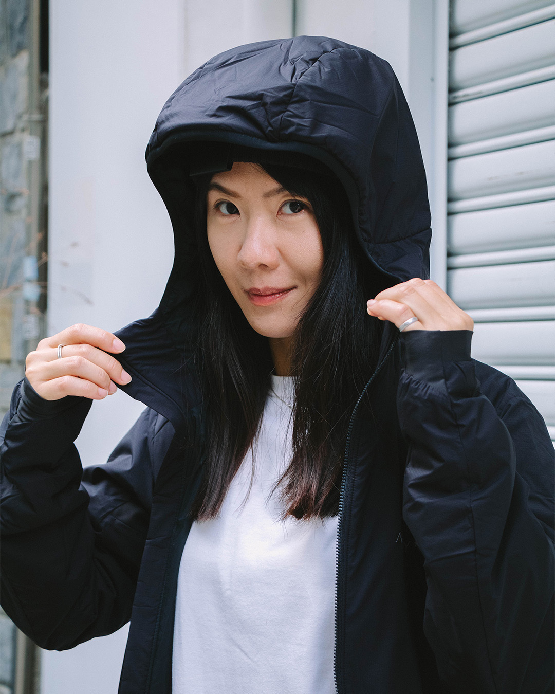 ・設計簡潔、含保暖填充的可調式StormHood™ 兜帽 ,有帽沿
