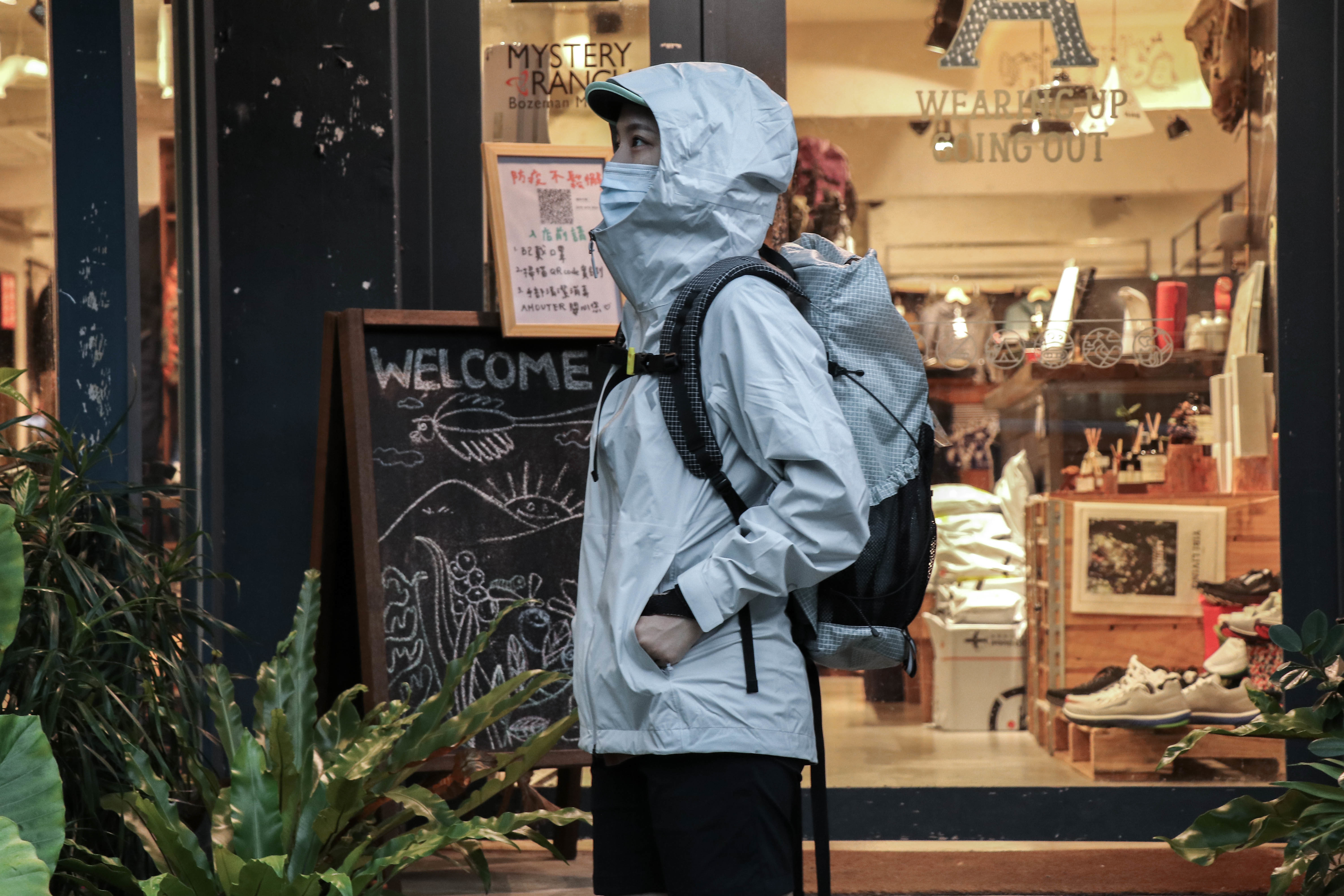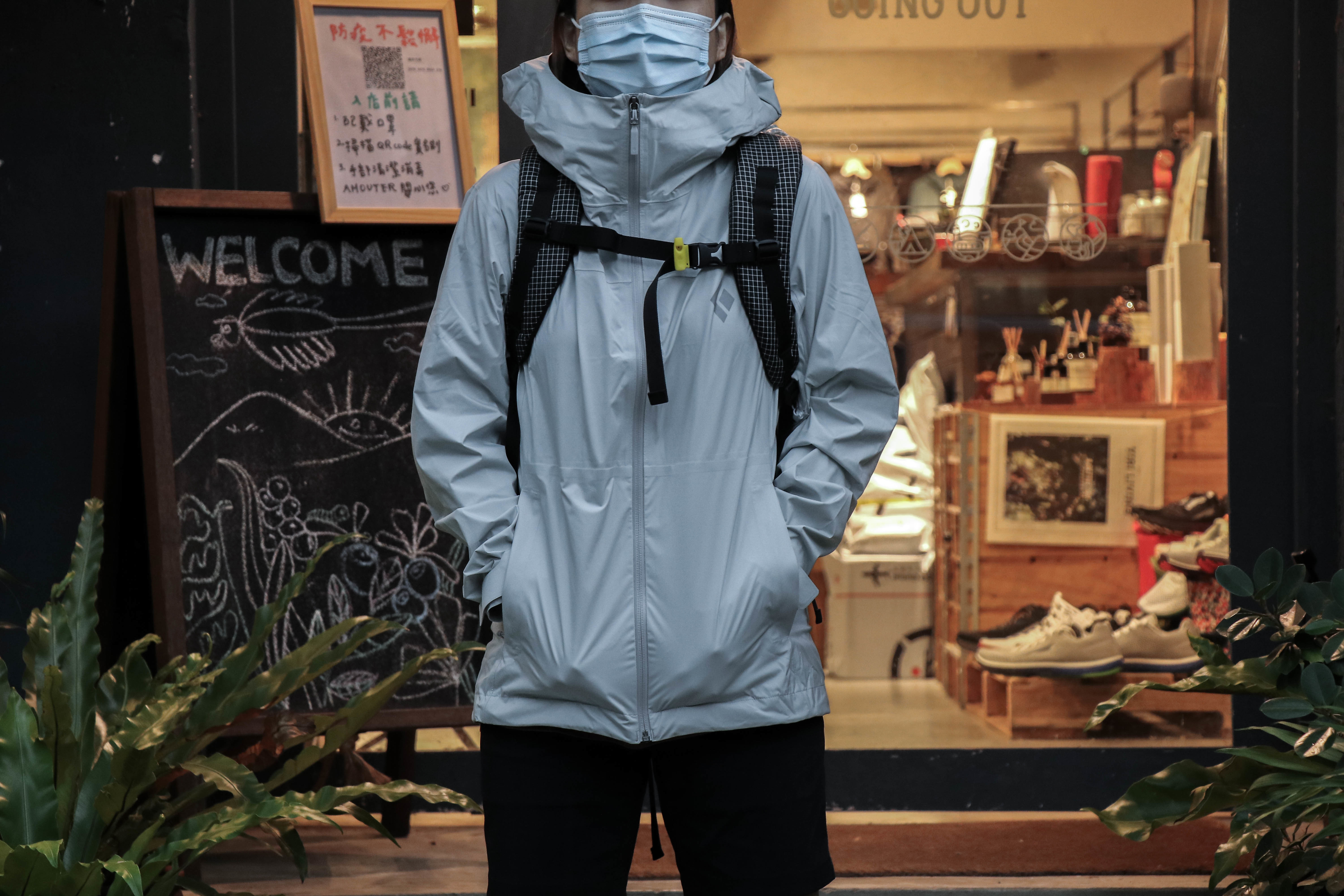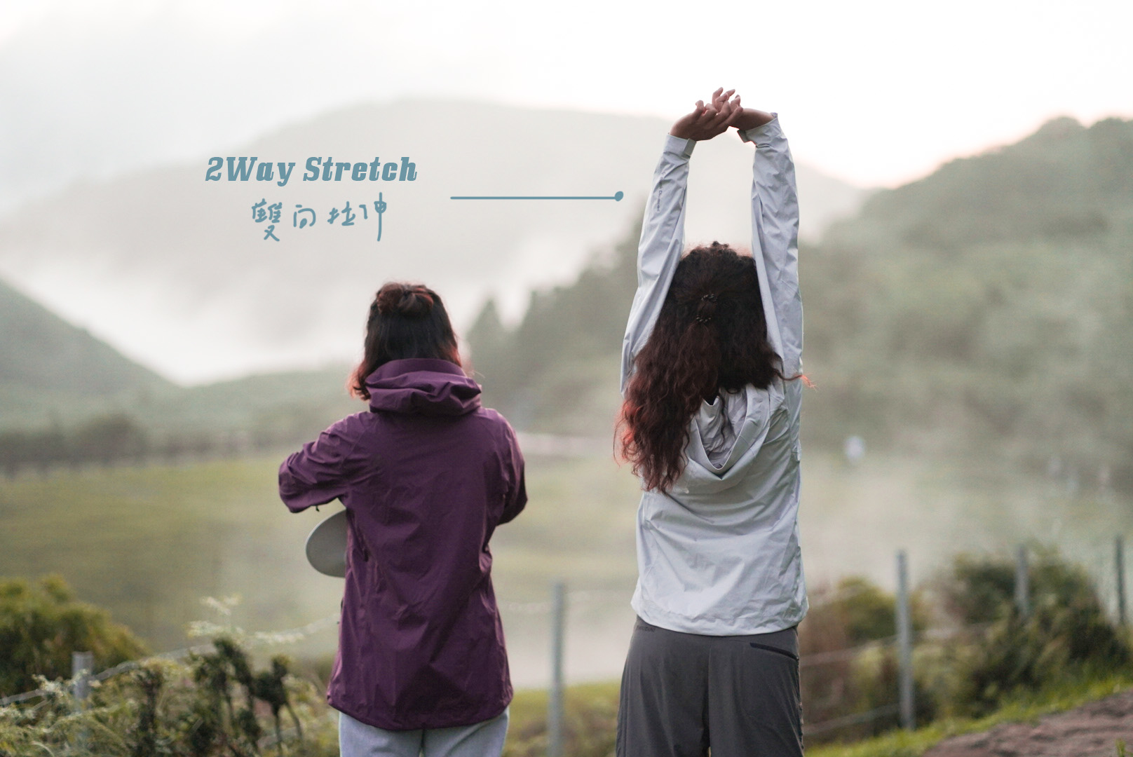 - 可調式鬆緊連帽設計適用滑雪攀岩的頭盔。