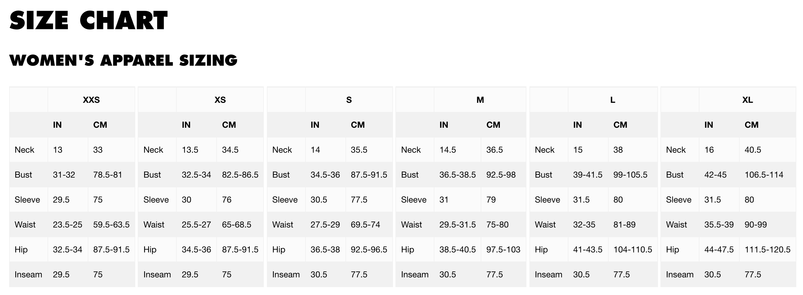 再依照Black Diamond 褲子尺寸表,找到適合自己的size: