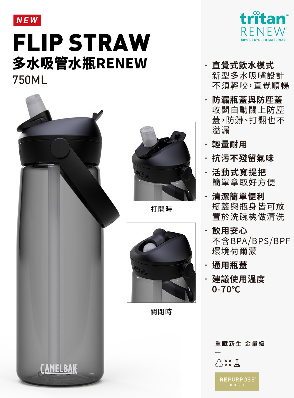 CamelBak 750ml Flip Straw多水吸管水瓶RENEW