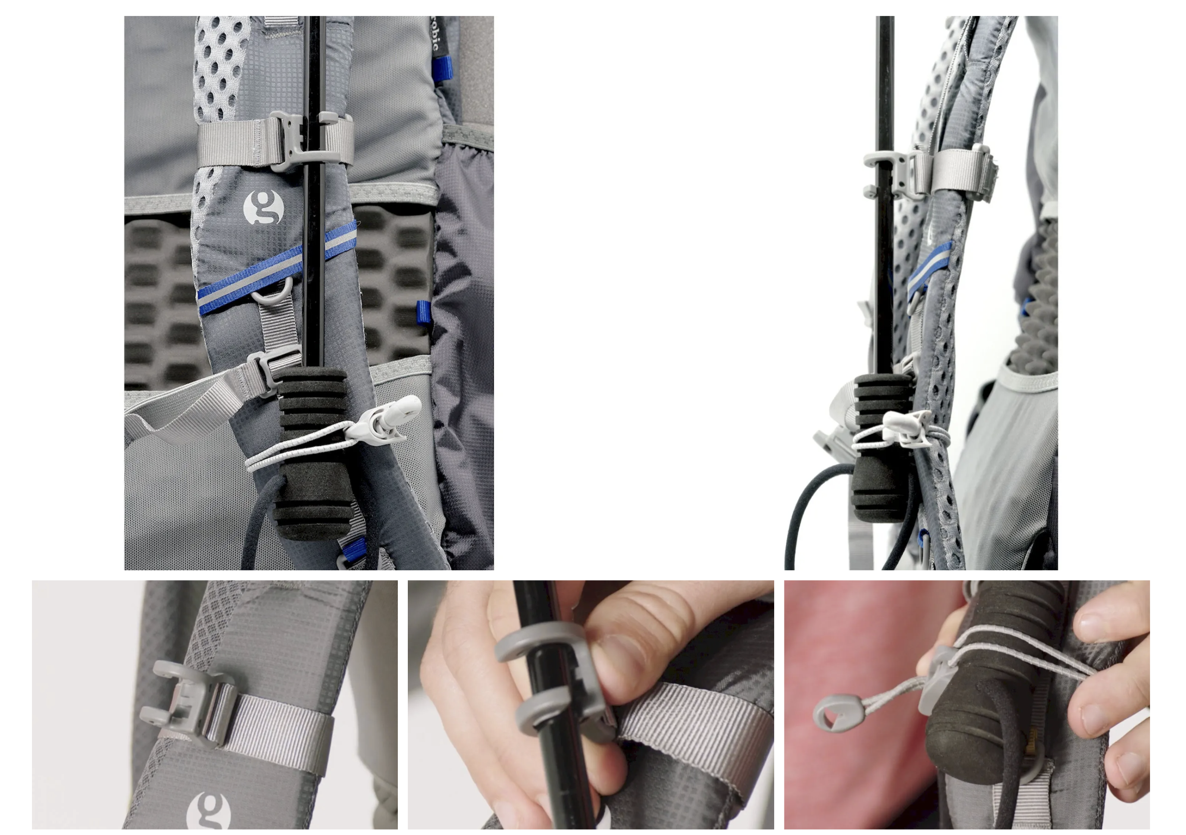 .一個傘桿夾與一條彈力繩夾,與雨傘結合後,釋放雙手。