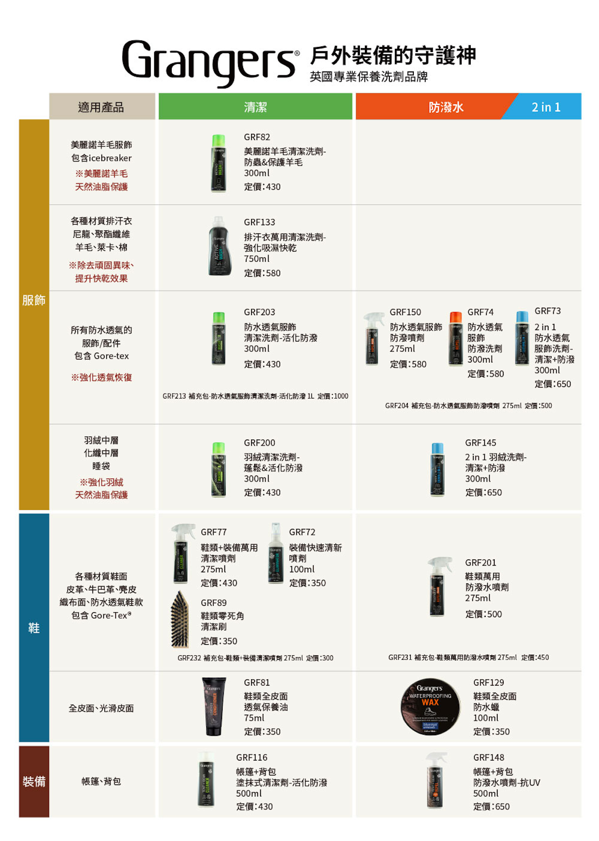 Grangers 防水透氣服飾防潑洗劑 300ml