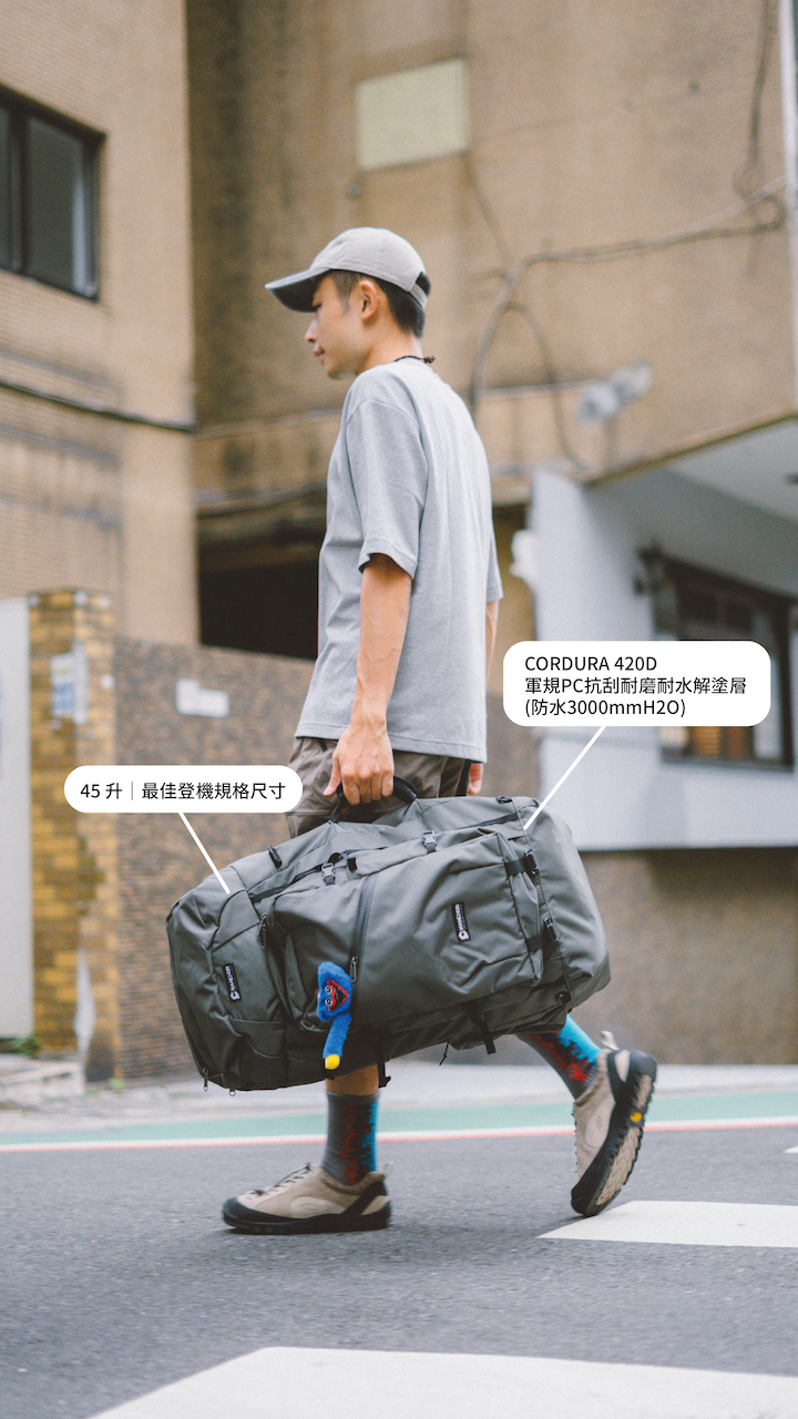 擁有超過一百顆各式各樣的背包,旅行用的、爬山用的、攀岩用的… 但每次出門仍難以決定要帶上哪一顆,所以想設計一顆能適應不同的環境,到哪都能陪伴一起冒險的旅行背包!於是我們根據大量經驗與製作技術揉合旅遊者的需求,經過長時間的反覆測試與調整後最終打造出擁有最佳登機尺寸規格、模組可擴充式設計、前方頂部雙收納開口、戶外規格背負系統、旅行分類收納、生活防水機能,集背包客需求於一身的的旅行包款。