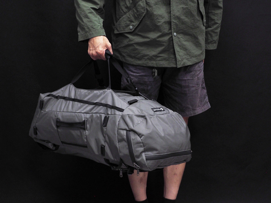側邊的提把可以做為背包背負外臨時提拿的方式,另外也可以調整前方的壓縮帶搭配側邊手把轉換為手提旅行包袋使用。