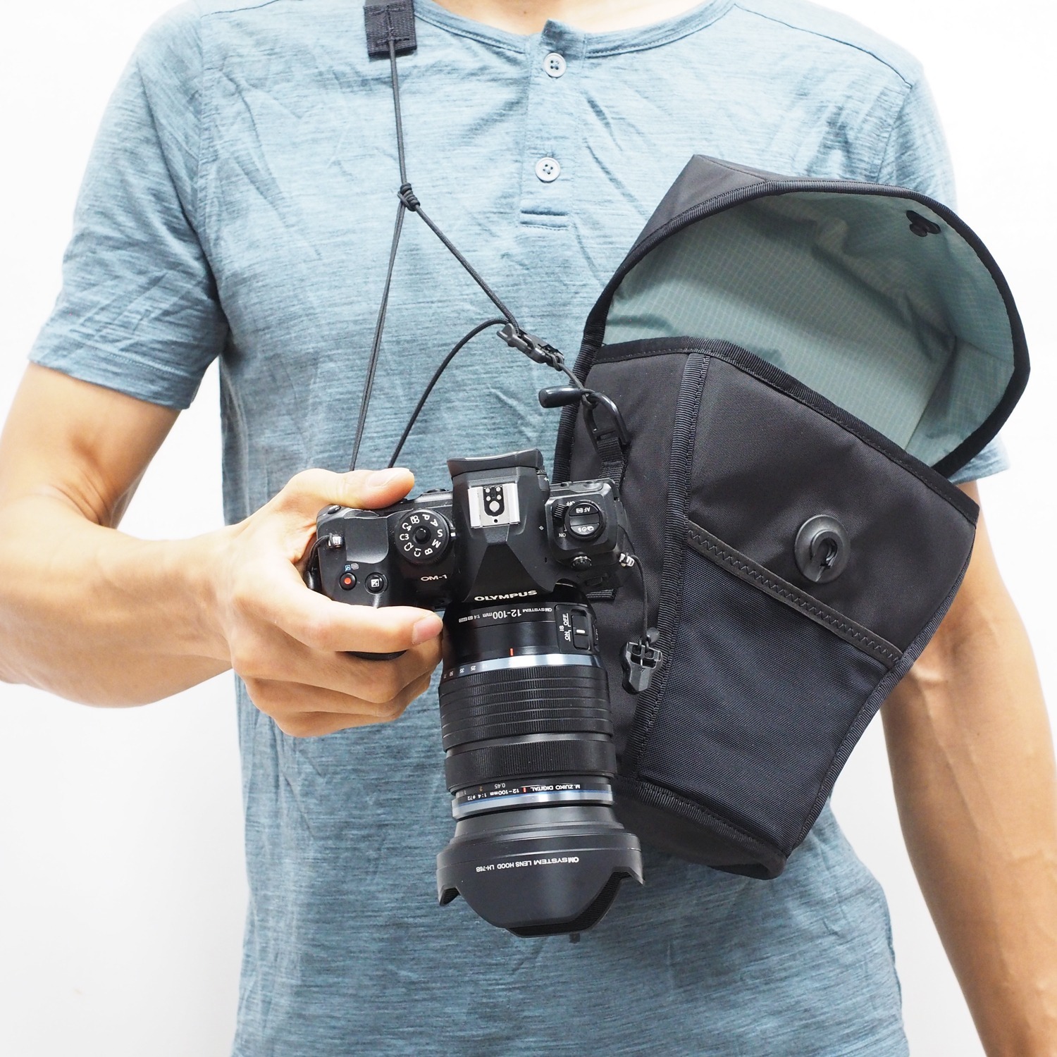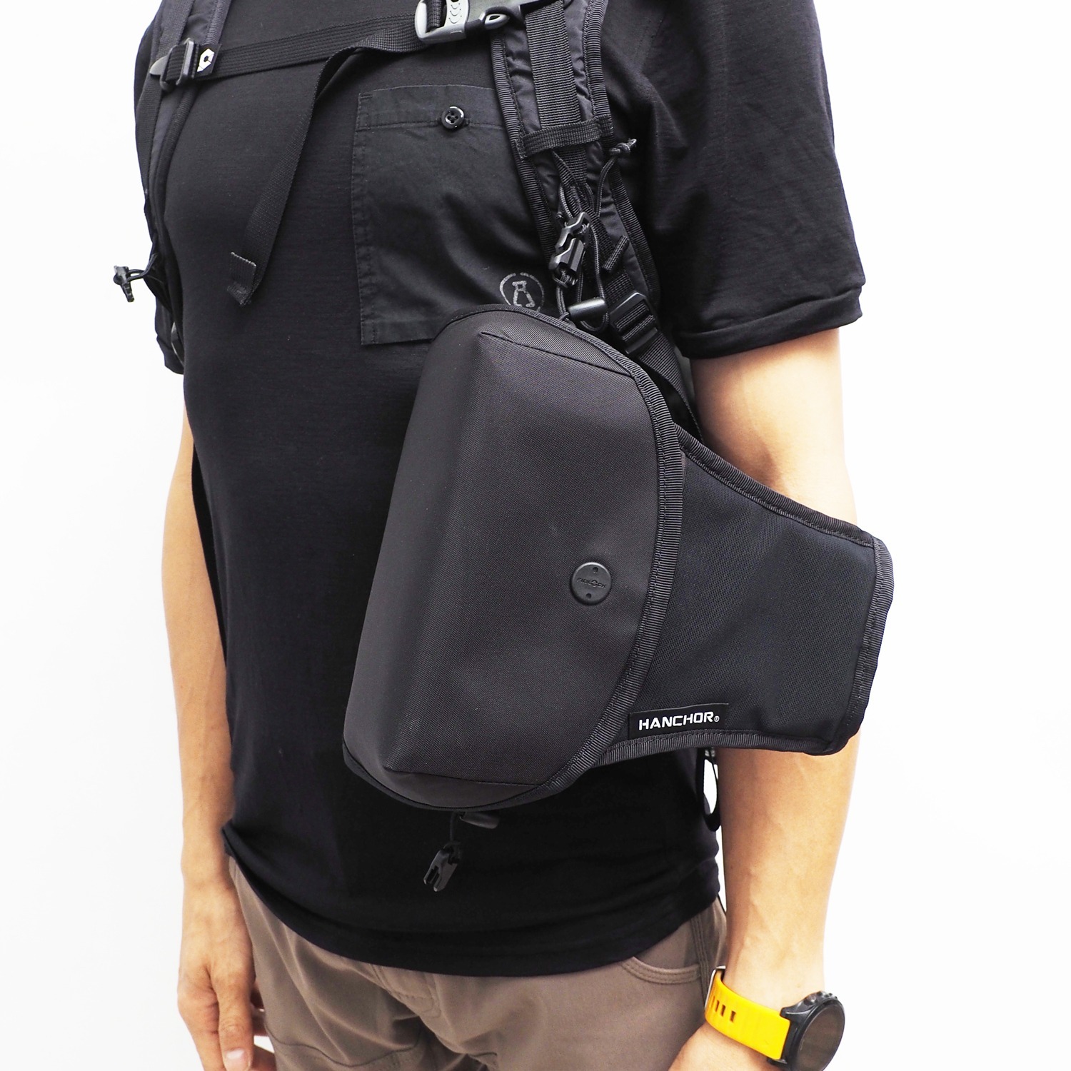 為行進間專屬設計之輕量化相機袋,能簡單斜背,也能直接掛在背包胸前,一秒快取、快收隨時抓拍,輕量化規格全面防護、雨天也不用擔心。