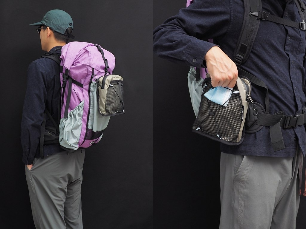 一般無腰帶的背包亦可搭配使用在肩帶連結腰間的織帶位置,作為類似胸袋隨時取物的機能收納空間。