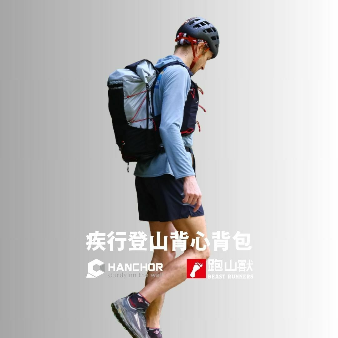 HANCHOR X 跑山獸聯名限定款,越野疾行系列登山背心背包,採用輕量透氣網布材質打造背心式貼身背負感受,提供 14-32L 彈性容量與最即時的補給、飲水,同時給予快速移動的穩定性,完美勝任單日到多天數登山行程的最佳夥伴。