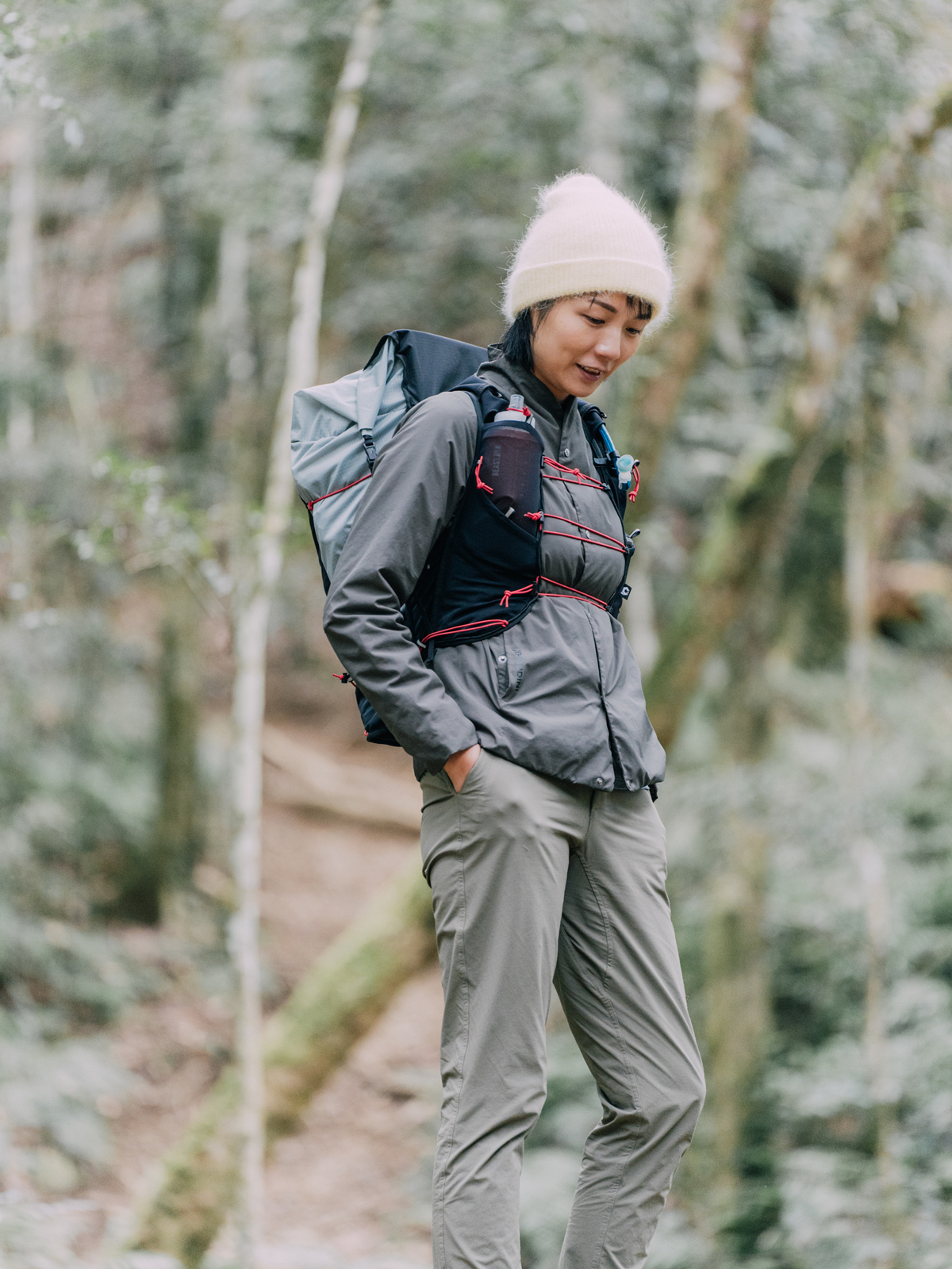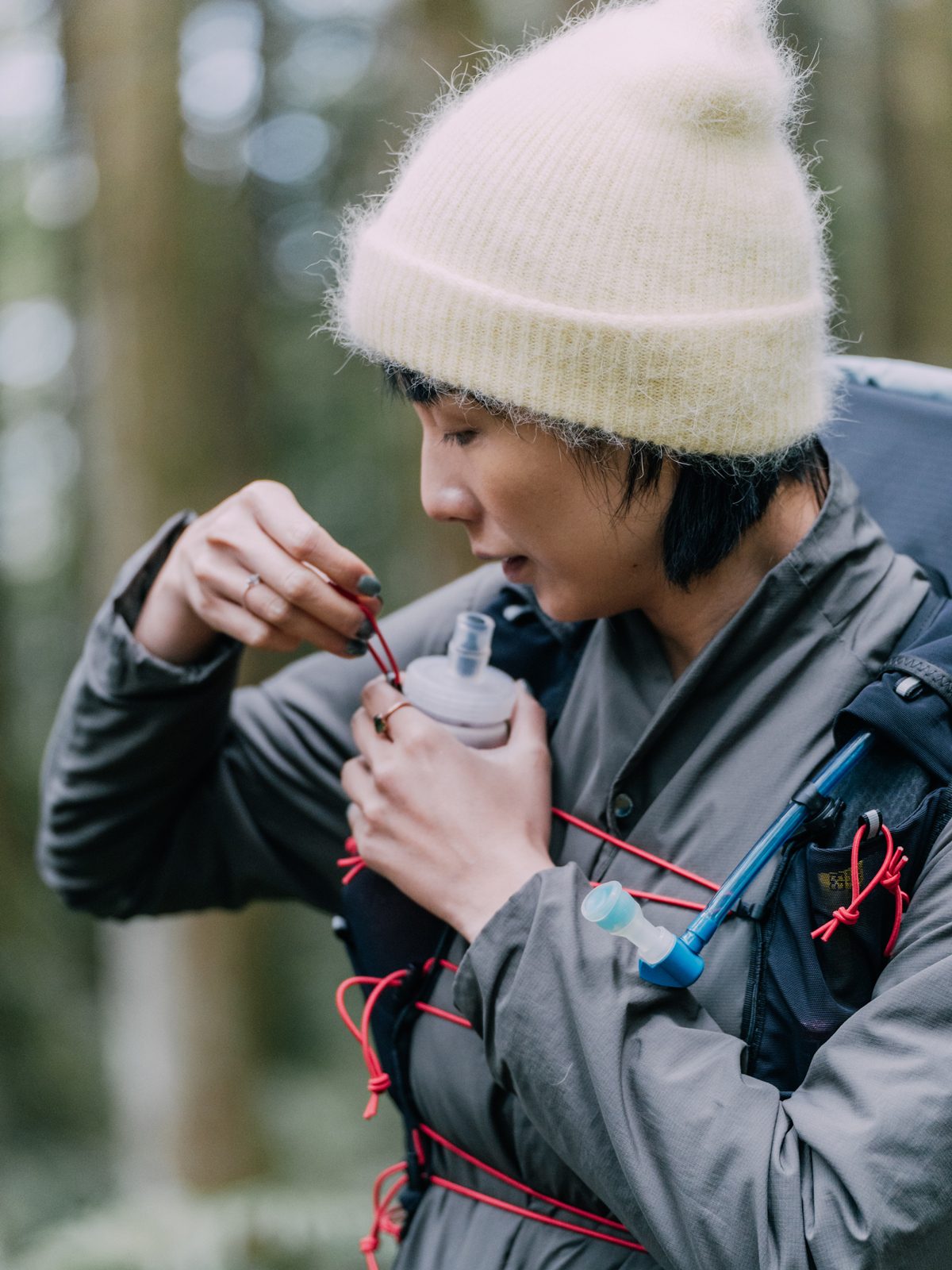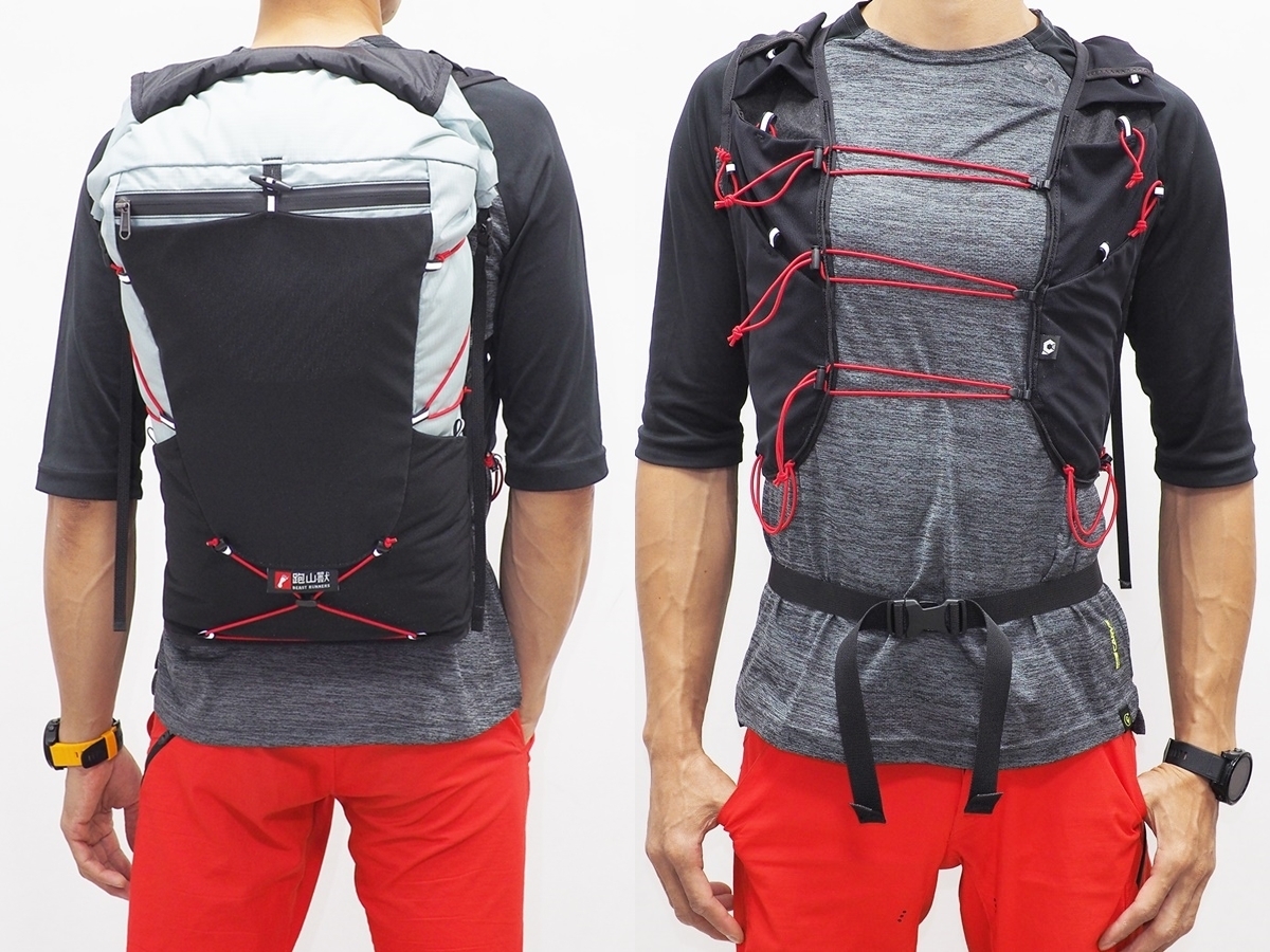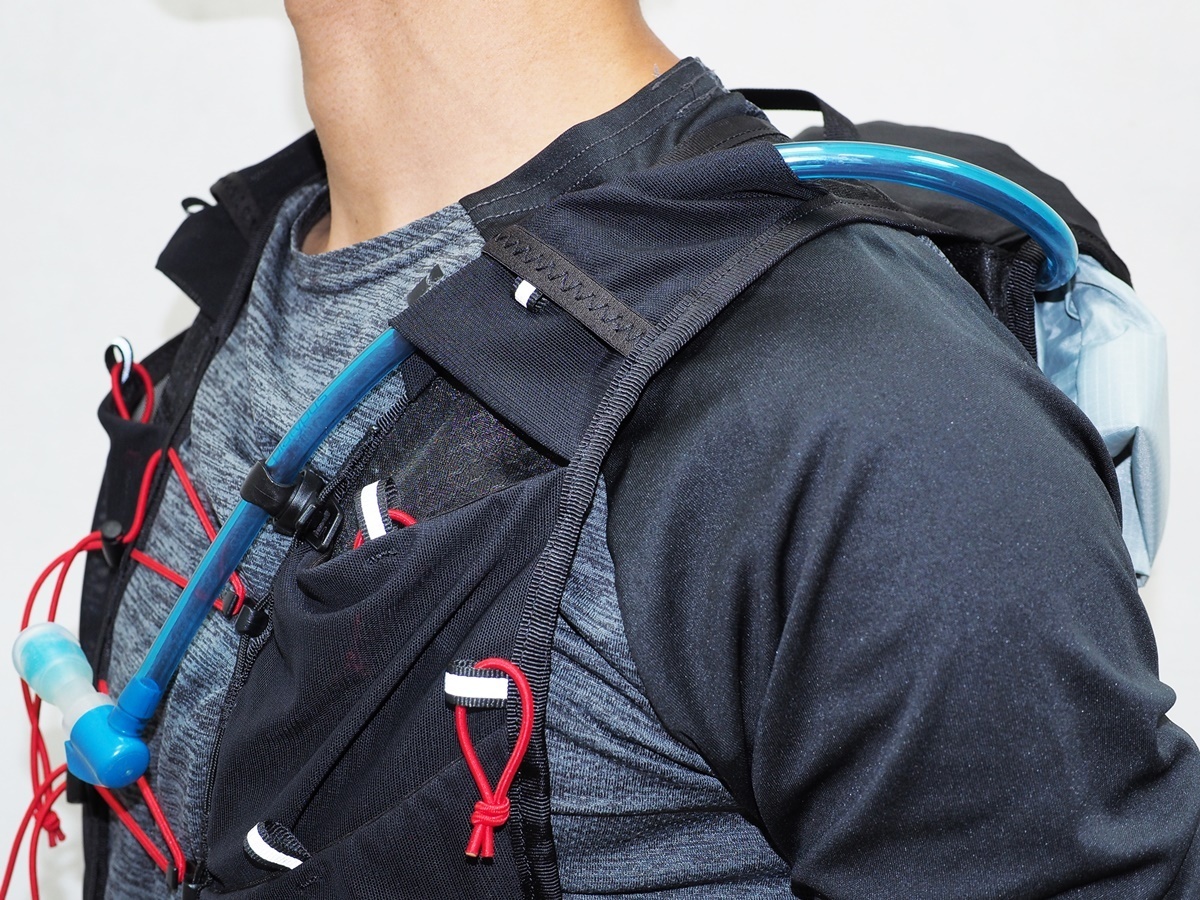 穿著式的背心背負系統不僅能提供良好的穩定背負,彈性網布製作的肩前口袋系統還能給你最即時方便的取物與收納,適合放置軟水壺、能量棒、手機這類隨時會拿取的各種小物。