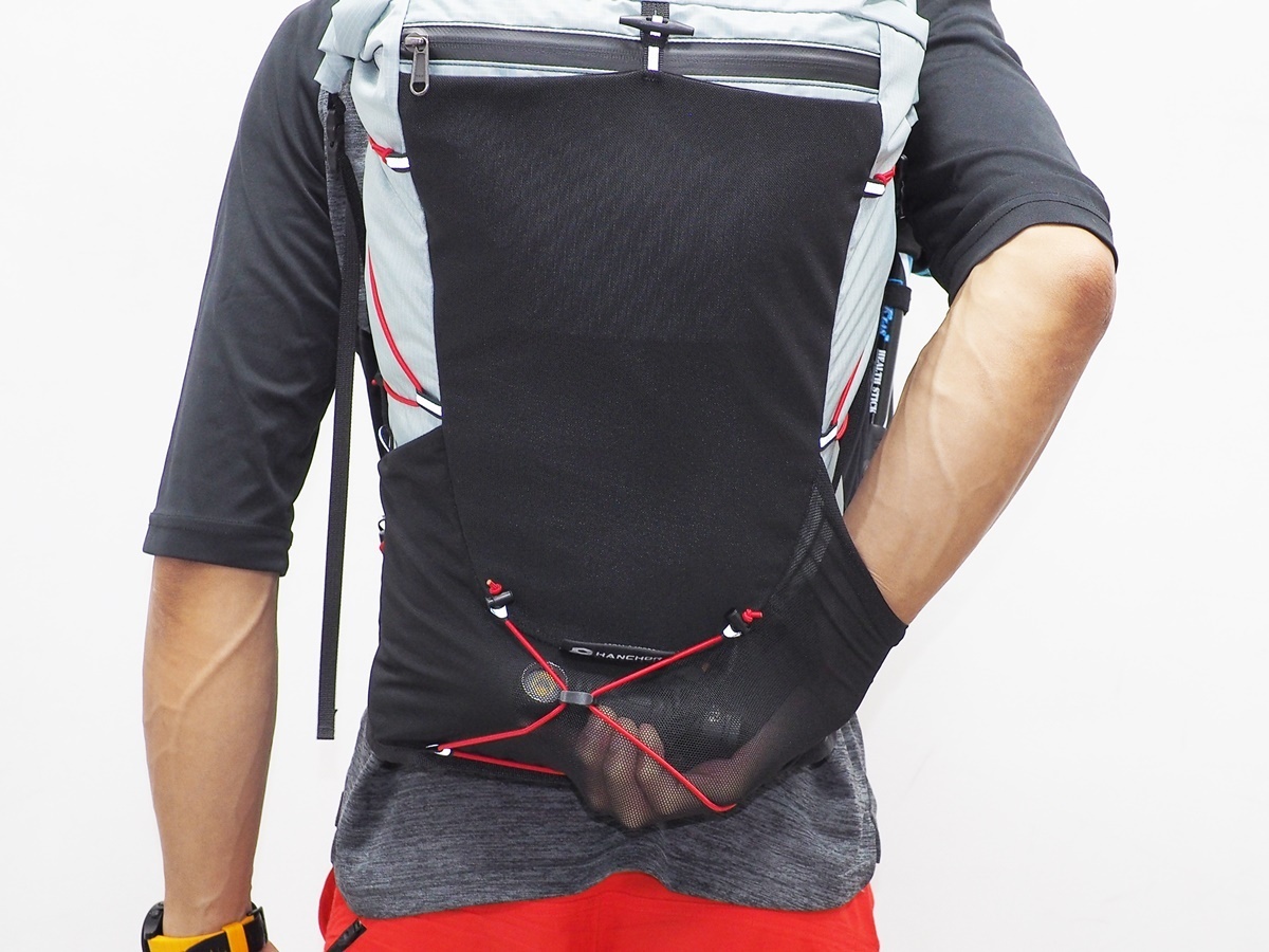 彈性網布製作的大網袋則適合收納帽子、風雨衣這類體積較大有可能帶有水氣,卻又需要隨時因應環境狀況使用的裝備。