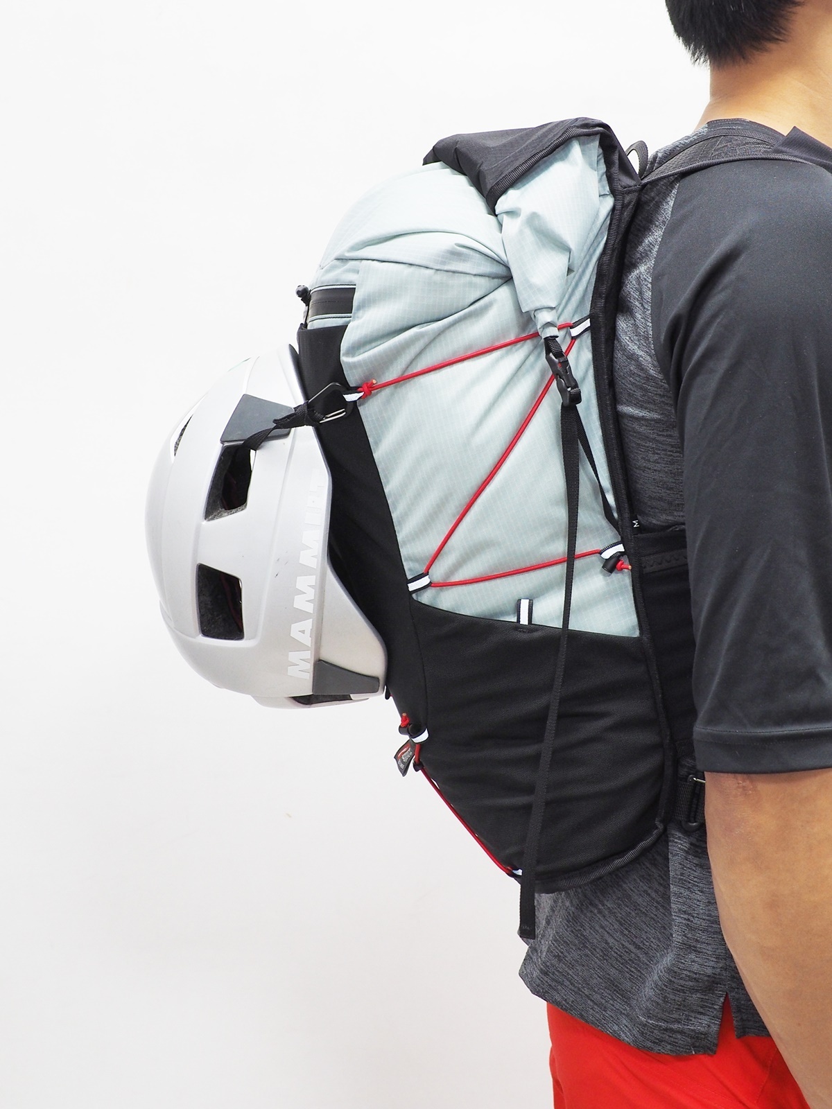 運用包身的織帶環設計,搭配 捆紮帶配件 即可迅速外掛頭盔等各式裝備,擁有更多元的背負機能。