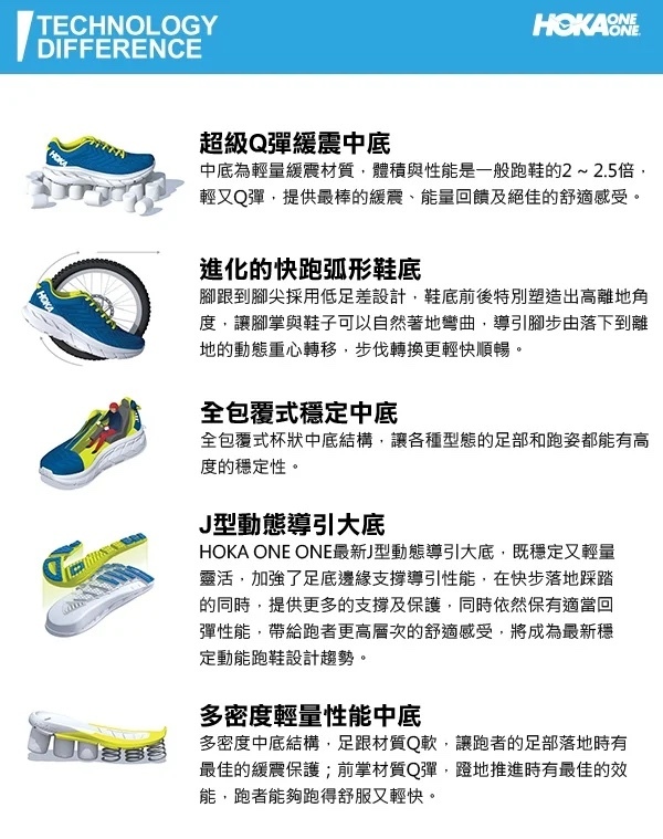 - HOKA ONE ONE最為緩震之路跑鞋,將外型重新設計打造日常穿著用鞋。