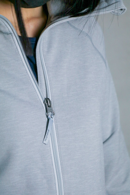輕薄連帽刷毛外套。內部柔軟舒適,外部光滑耐用。全年皆適宜的中層。