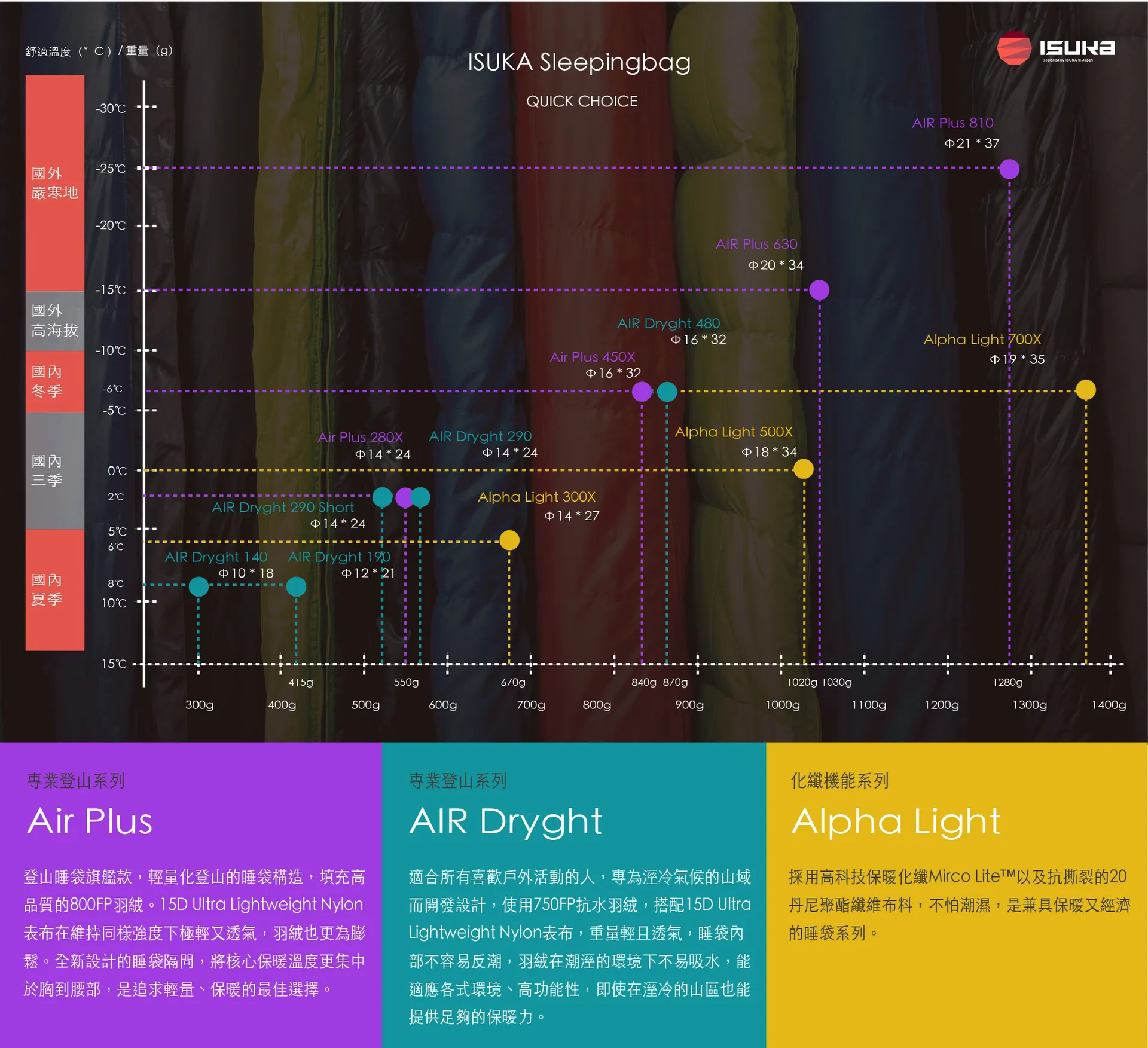 ・在維持同樣強度的前提下,布料更輕更透氣,且讓羽絨更容易膨鬆。