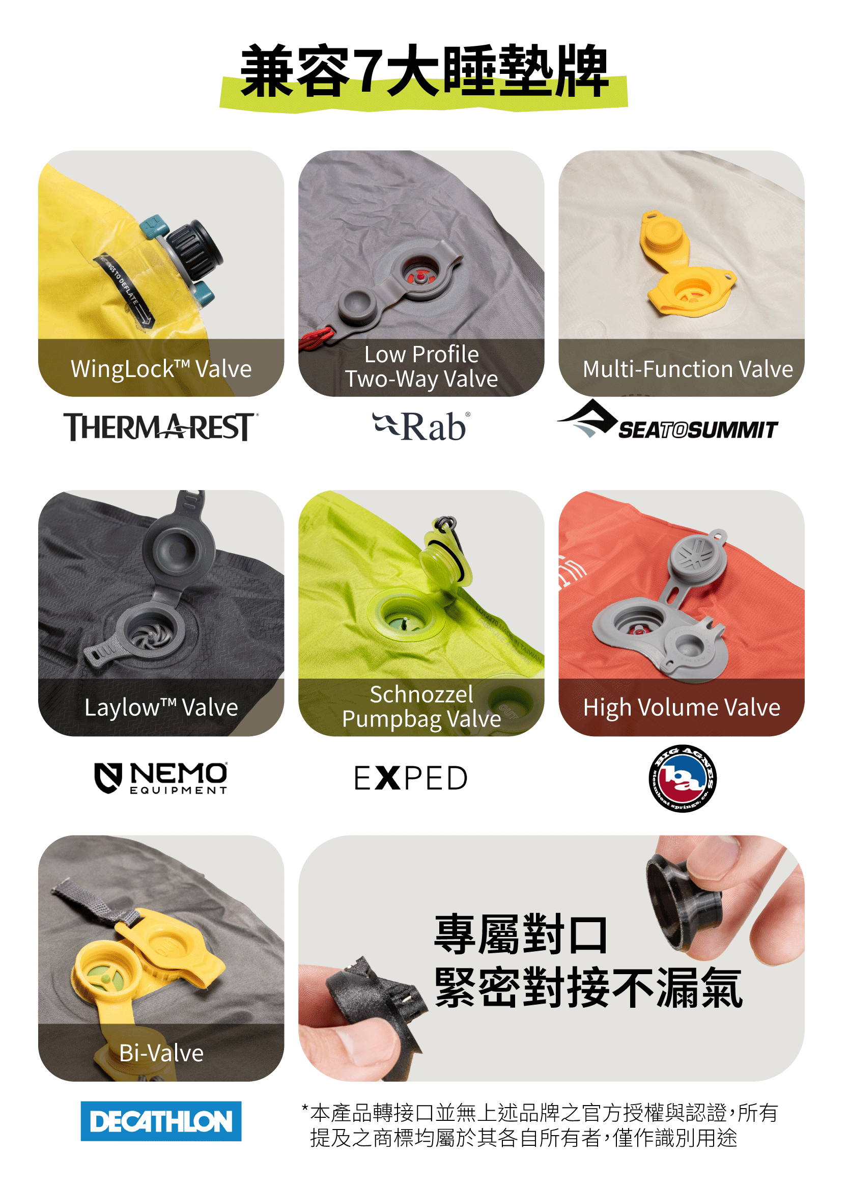 我們了解通用接口能讓更多人體驗 KIN PUMP 的優異性能,但也可能帶來脫落或漏氣的風險。相比之下,專屬接口能更穩固地固定在睡墊充氣閥上,無需手持,真正解放雙手。我們致力於為山友打造更高效、穩定且舒適的使用體驗。
