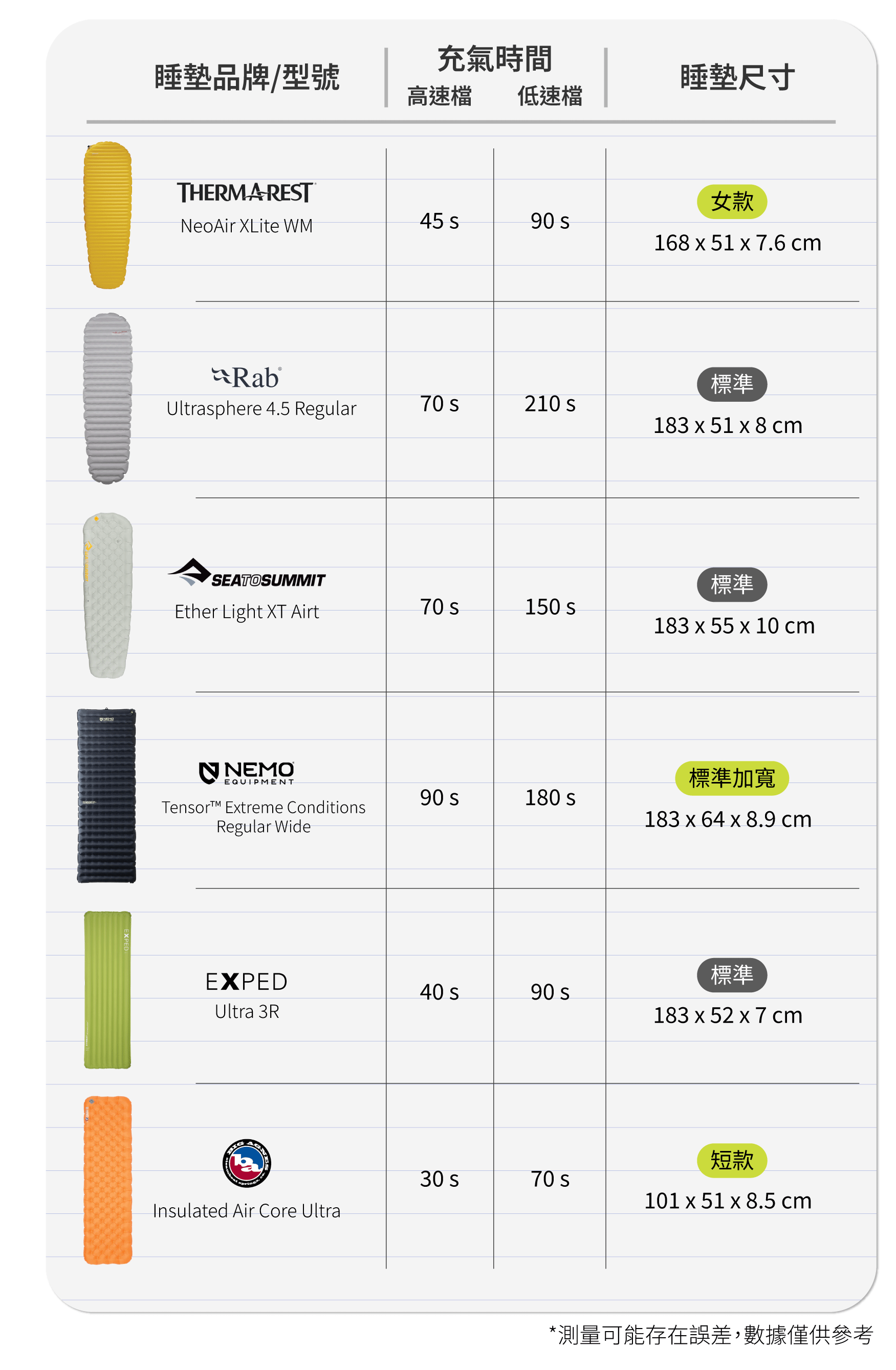 由於各品牌睡墊的氣閥設計不同,充氣效果可能有所差異,適量調整可確保最佳使用體驗。