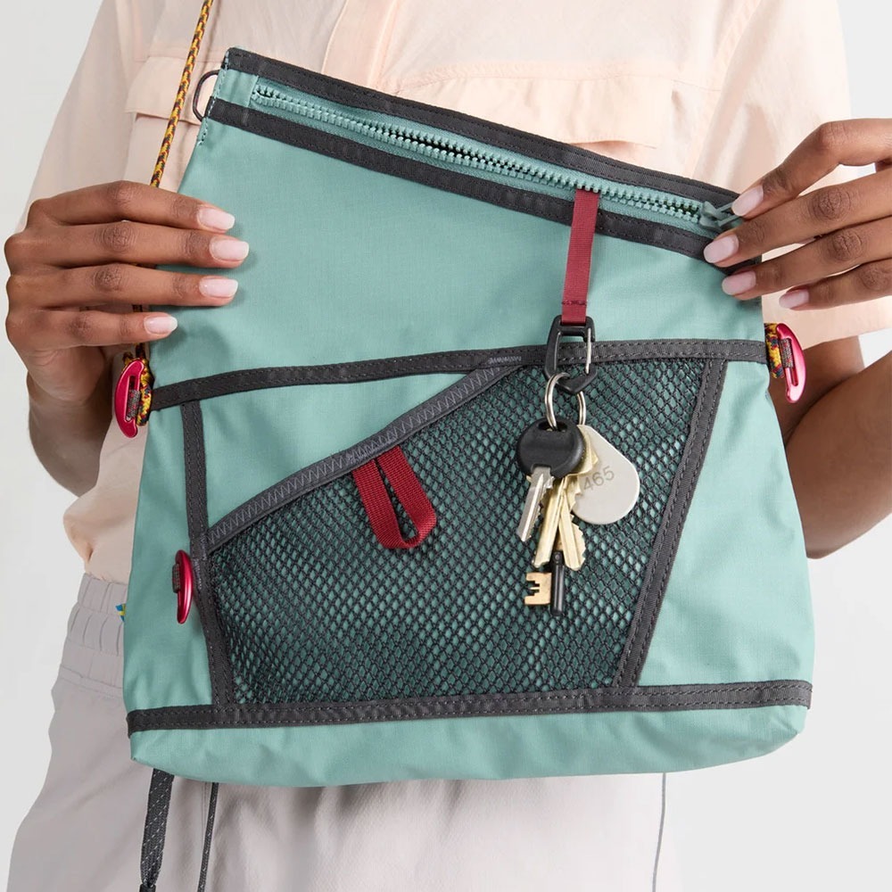 Hrid WP 配件包由 100% 可回收聚酰胺 70D Retina® 面料和 Econyl® 紗線製成,這是我們最輕的材料。它經過塗層處理並具有全壓膠接縫結構,使其 100% 防水。它有一根可調節的繩索,可以掛在肩上或脖子上,還有兩個栓扣,方便你將它掛在背包上。主隔層有一個拉鍊開口,由可鎖定的翻蓋保護,以防止任何天氣。這個翻蓋還覆蓋了外面方便的網袋,可以用一個小夾子打開,擴大了包的尺寸。它還在內部配有一個鑰匙夾,以確保其安全。