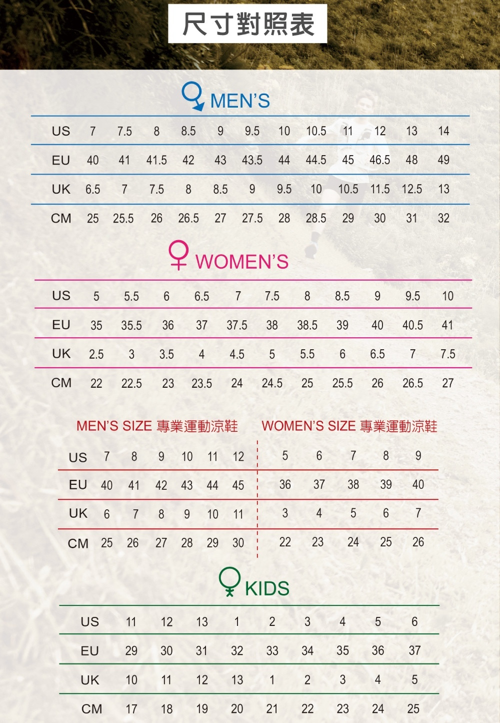• 彈力繩鞋帶搭配快速扣環,加上魔鬼氈黏扣 帶設計,可依據腳型方便快速調整鬆緊