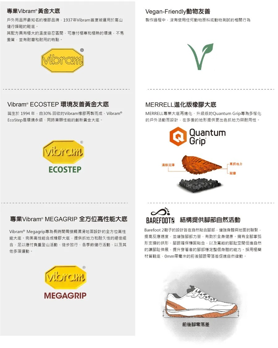 ・Vibram® MegaGrip®高性能橡膠大底,具有乾濕地表面無與倫比的抓地力