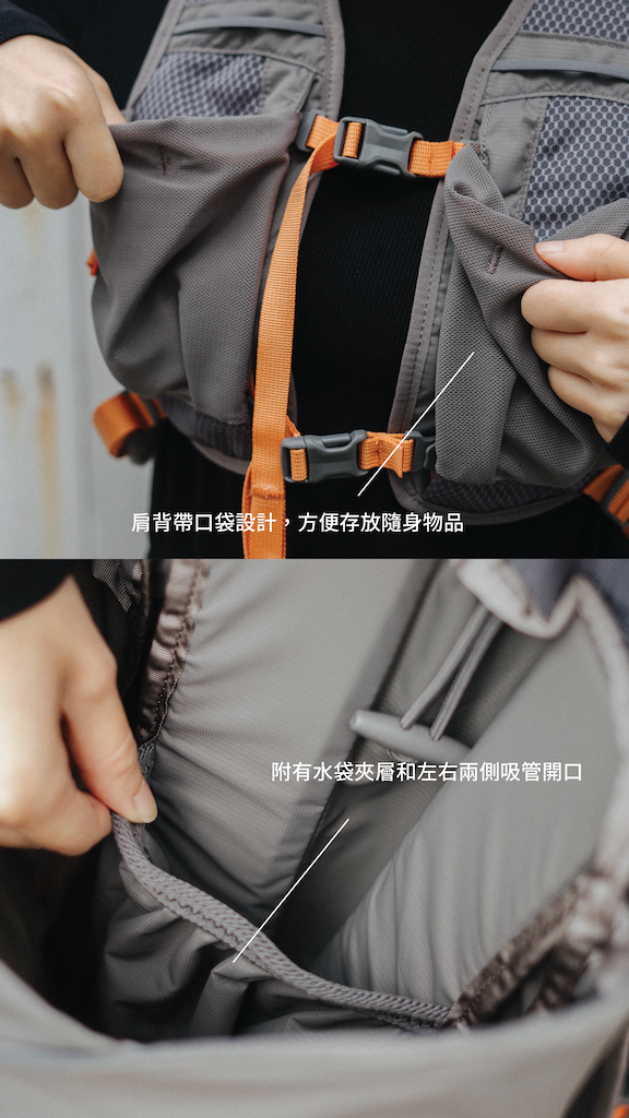 ・帶口袋的肩墊為手機或太陽眼鏡等小物品提供了更多的整理和存儲空間