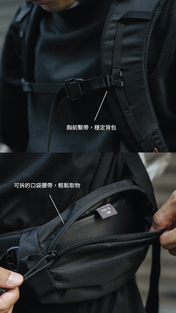 ・可拆的口袋腰帶讓您輕鬆拿取零食、手機或太陽眼鏡