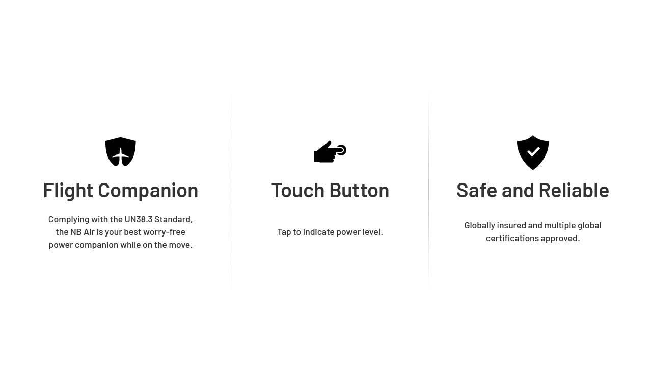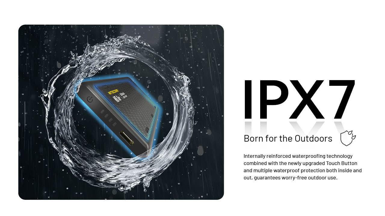 這款行動電源專為耐用而生,其無縫設計擁有 IPX7 高階防水等級,無懼雨水、噴濺或潮濕環境。此外,NB Air 符合航空安全標準(Airline-approved),無論是搭機、通勤還是前往人煙罕至的荒野,都是完美的旅遊良伴。憑藉輕巧便攜、堅固耐用與性能可靠的特質,NB Air 已準備好為您的每一場冒險提供動力。
