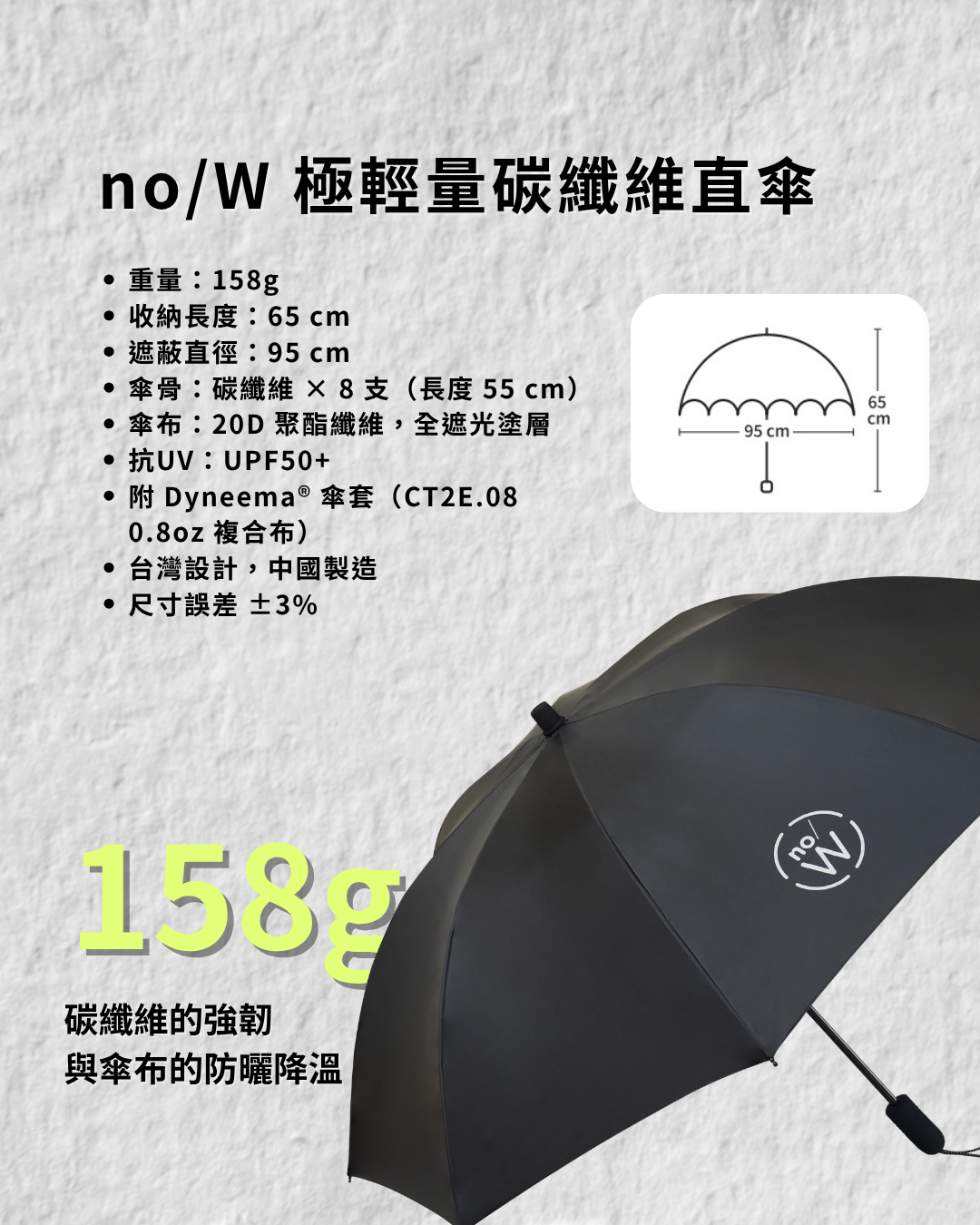 *傘身一色黑色,附超輕量DCF傘套,深綠、淺橙、蜜粉、青綠四色