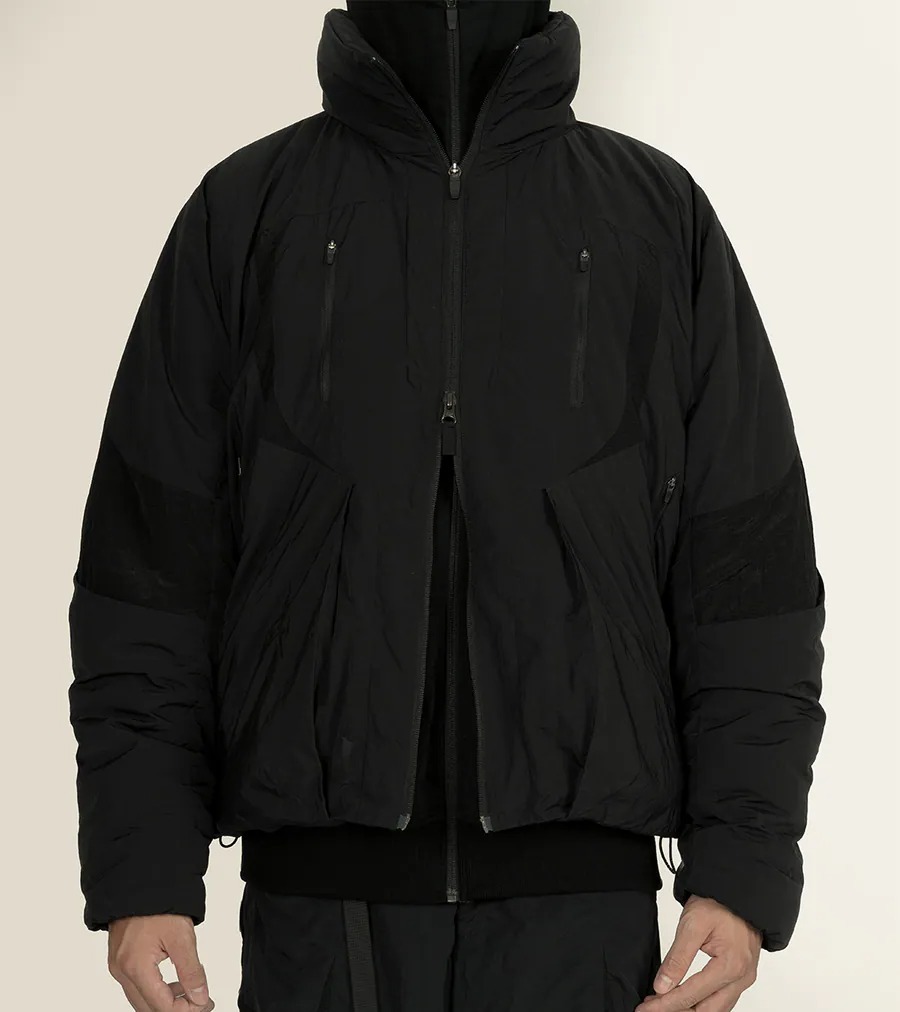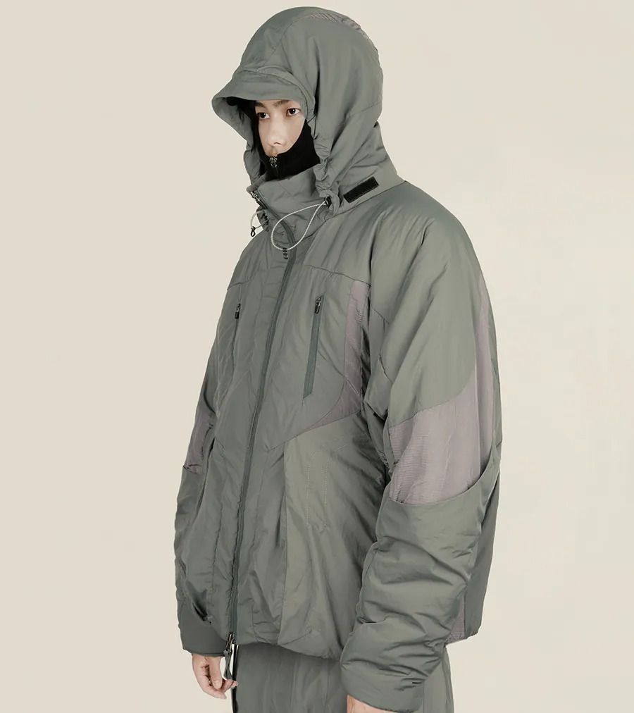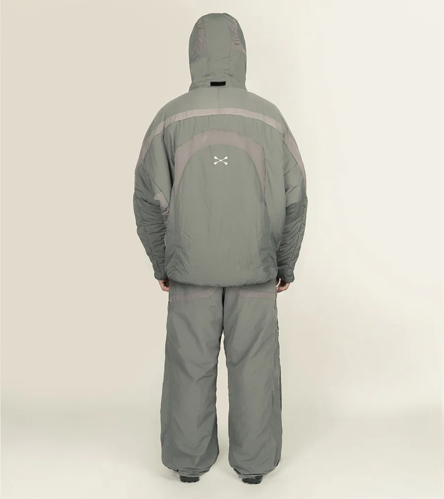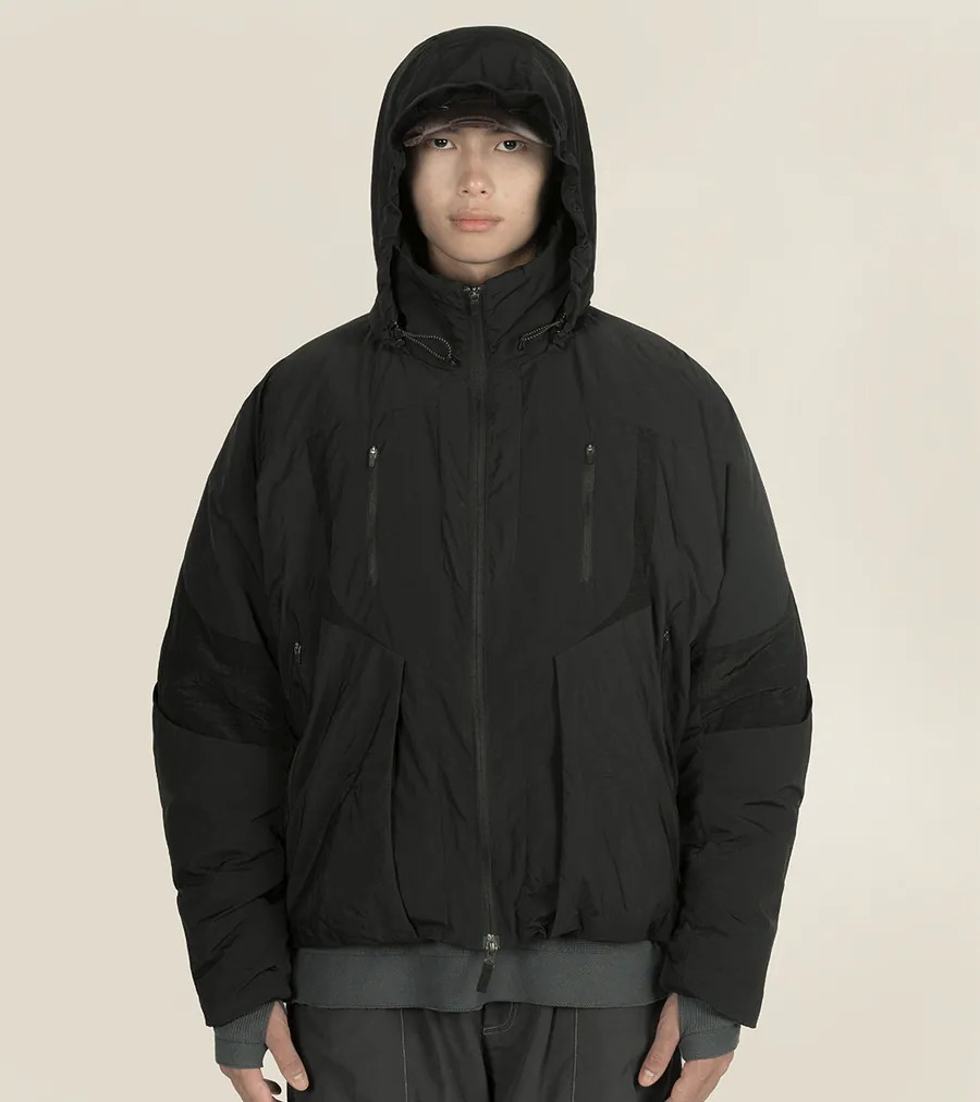 採用輕盈且高挺度的耐磨面料,內含 120g 鋪棉提供高效保暖。獨特的飛鼠袖剪裁,賦予極大活動自由度,活褶設計則在多層次穿搭中,增添結構感與視覺層次。
