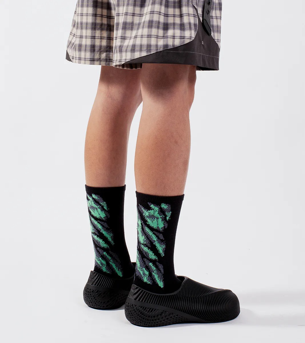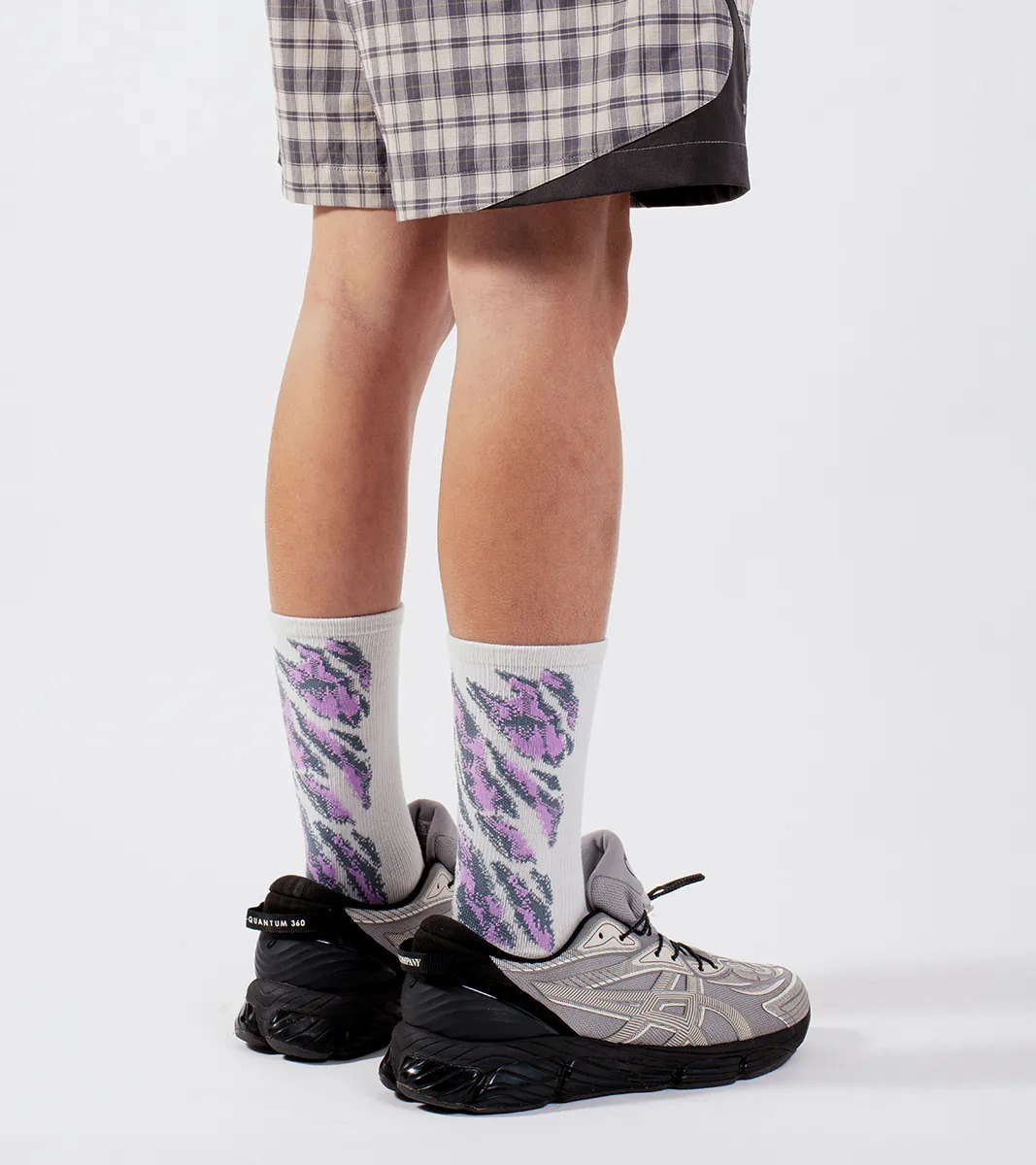 以冰河輪廓,刻劃城市穿梭的節奏。Landing 系列以全新圖像再現 nozzle quiz 經典,靈感源自冰河地形的高低起伏,轉化為襪身上的視覺紋理,讓每一步都展現街頭語彙與造型感。