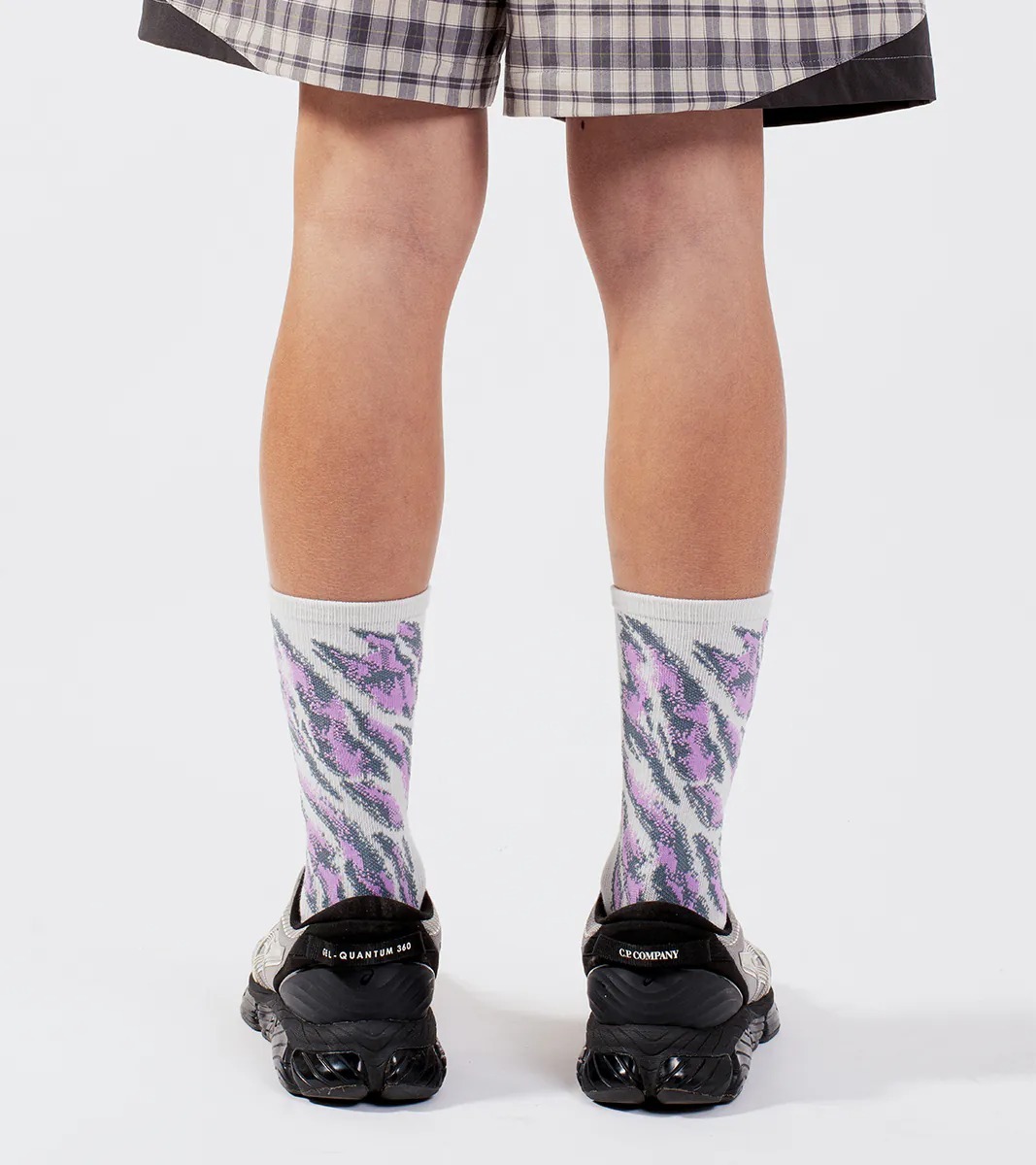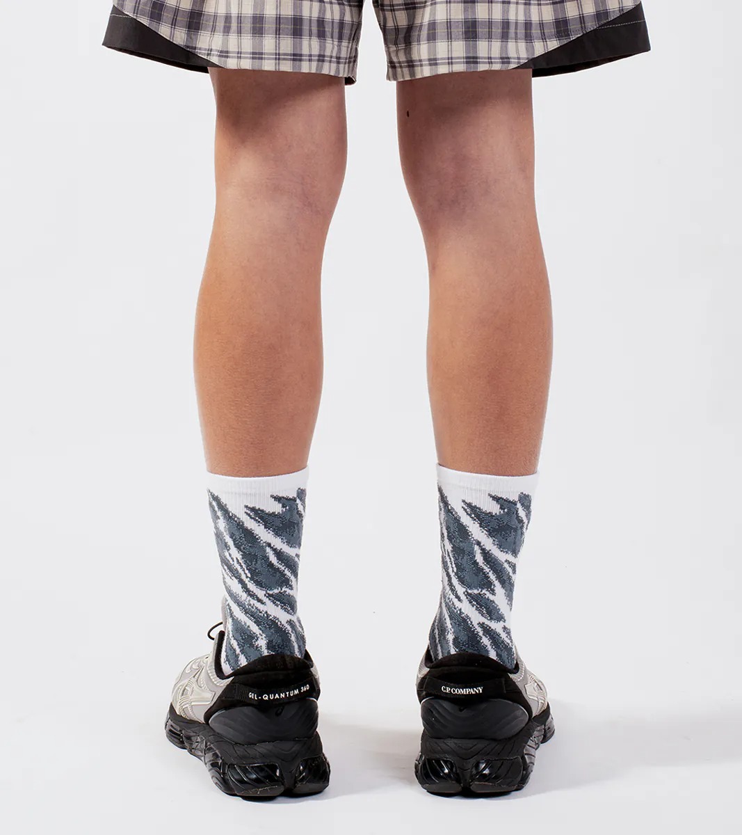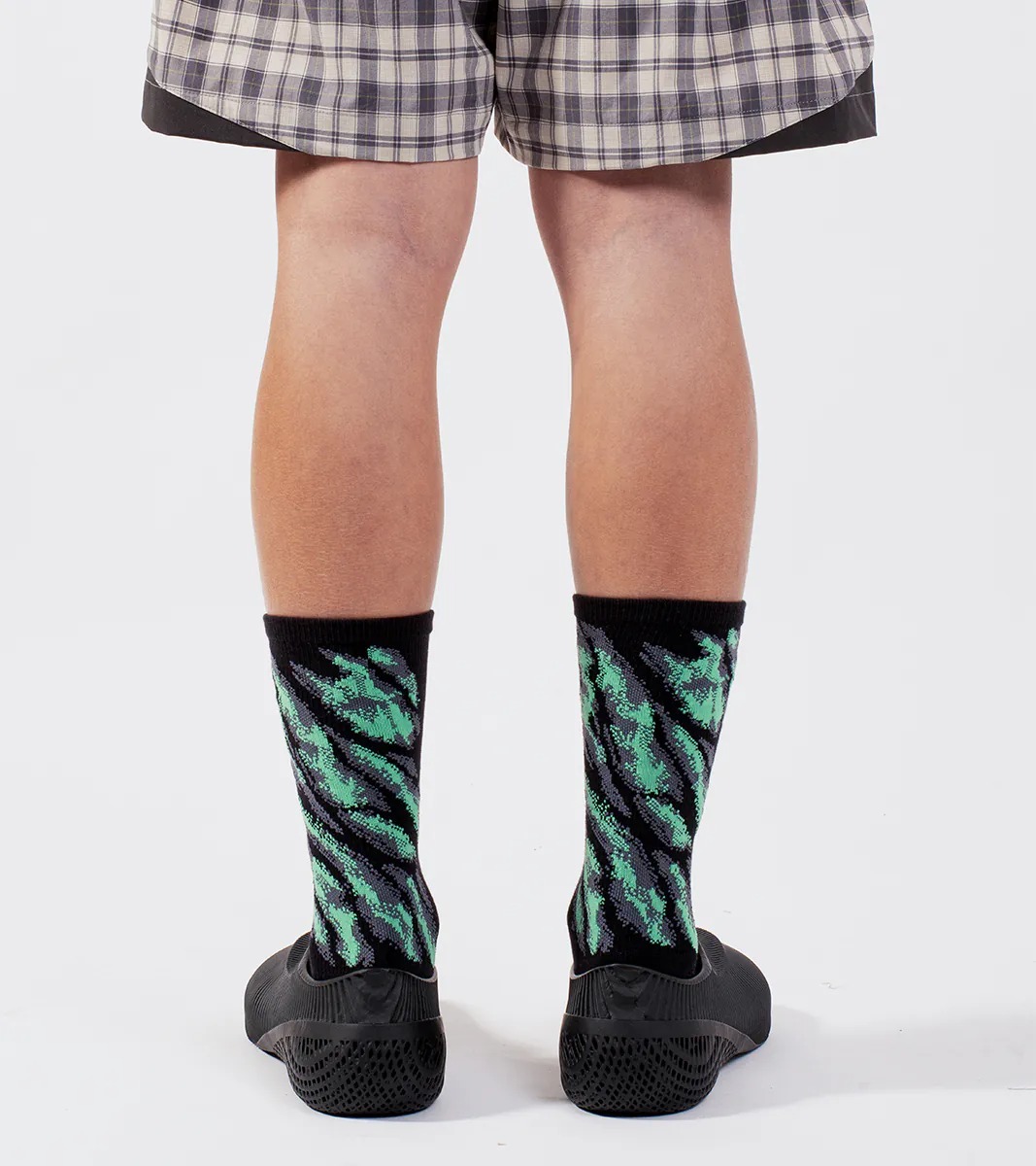 以冰河輪廓,刻劃城市穿梭的節奏。Landing 系列以全新圖像再現 nozzle quiz 經典,靈感源自冰河地形的高低起伏,轉化為襪身上的視覺紋理,讓每一步都展現街頭語彙與造型感。採用 Siro Spun 賽絡紡精梳棉 結合 Acteev® 鋅離子抗菌纖維,提供柔軟親膚、抑菌防異味的日常體驗,搭配 Lycra® 彈性纖維 提升包覆性與穩定度,無縫對目縫合工藝,穿著舒適無摩擦。不只是機能襪,更是城市中行走風格的延伸。