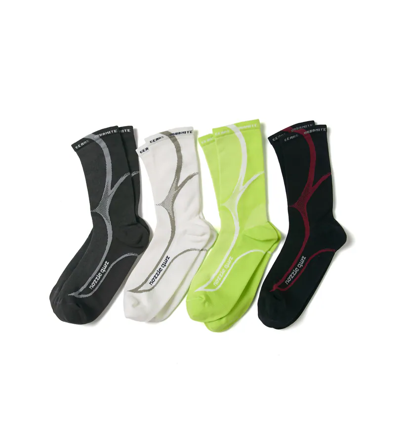 襪身以等高輪廓線設計,線條流暢動感;材質揉合 Acteev® 鋅離子抗菌纖維與 Lycra® 彈性纖維,兼具抗菌消臭與持久回彈力。自動對目縫合技術減少趾尖摩擦,實現零負擔穿戴。