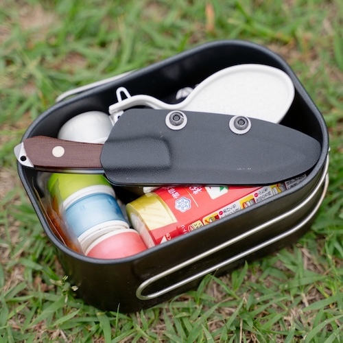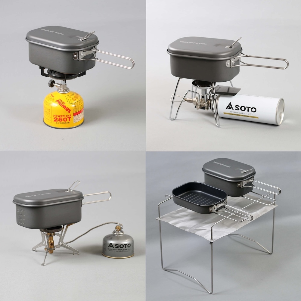 為獨行旅人與輕量露營者打造的全能鍋具組。以深鍋、平底鍋與蓋子三件組構成,能煎、炒、燉、煮,一鍋搞定多種料理。