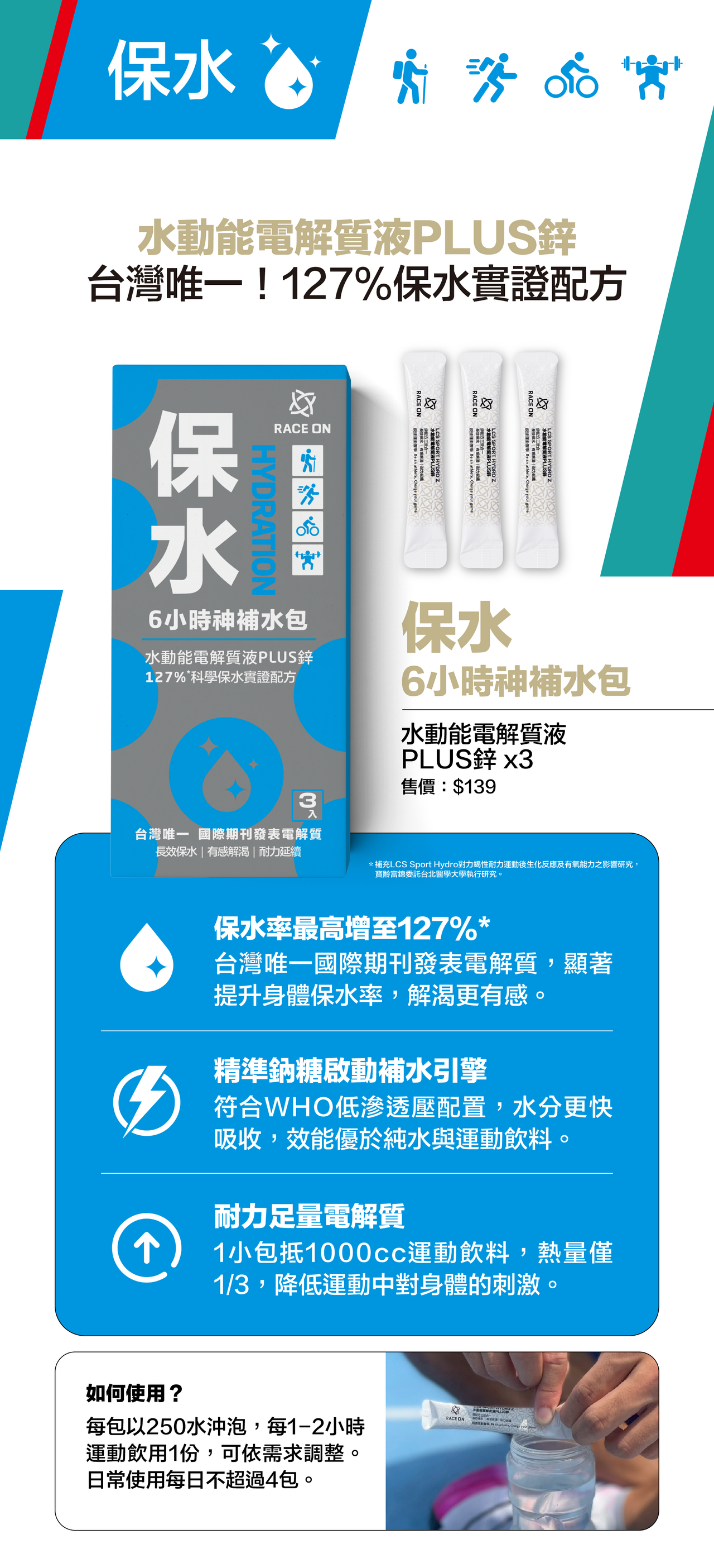 保水率最高增至127%*,臨床研究獲國際期刊肯定,長效保水、有感解渴、延續耐力,三效合一。
