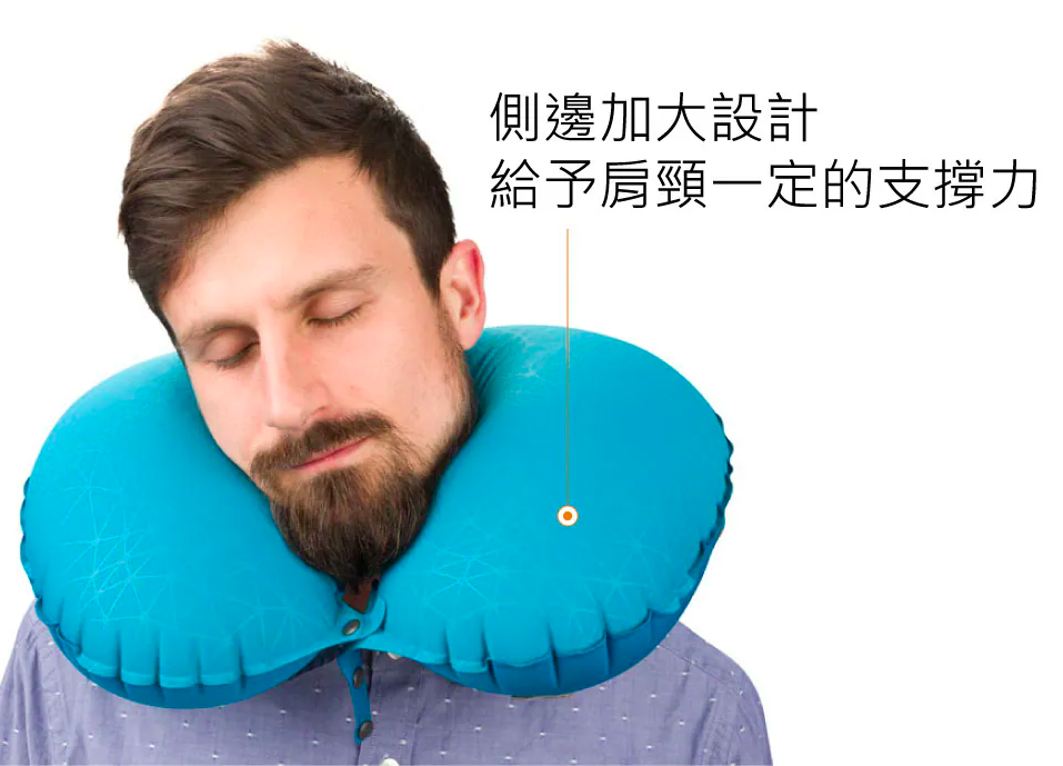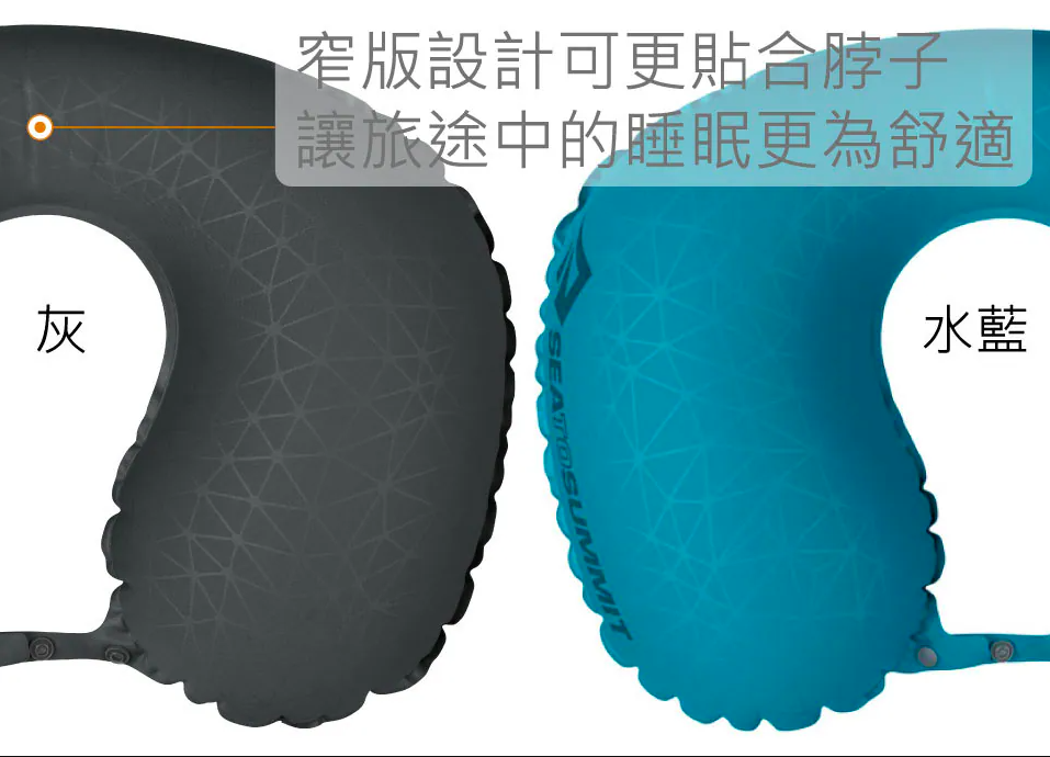 全新改版的20D 充氣頸枕,附有可調整的固定帶,給頸部更好的包覆、支撐與舒適度。固定帶使用20丹尼彈性針織布料,以不增加過多的布料來做固定,並保有舒適與柔軟度;透過3段扣環做調整,擁有2種長度可做搭配;此固定帶是直接縫附於頸枕上。