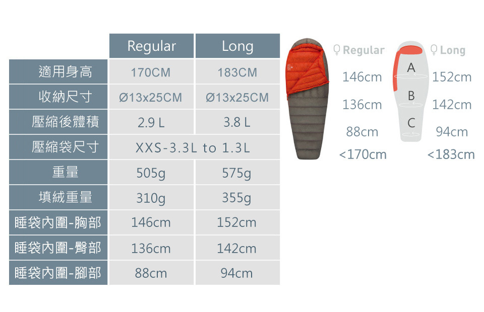 ■ 木乃伊式尺寸:接近身型,鎖住體溫並加強保暖性