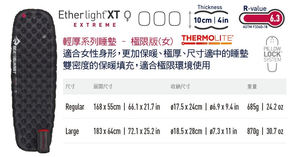 輕厚系列睡墊-極限版 女 (R、L) (含充氣袋,維修備品,枕貼)