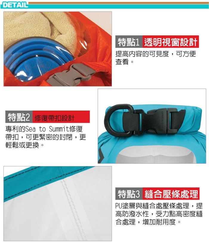 ・全新可透視防水收納袋可以一眼看出裝備位置,取物便利,非常適合共用背包的人使用