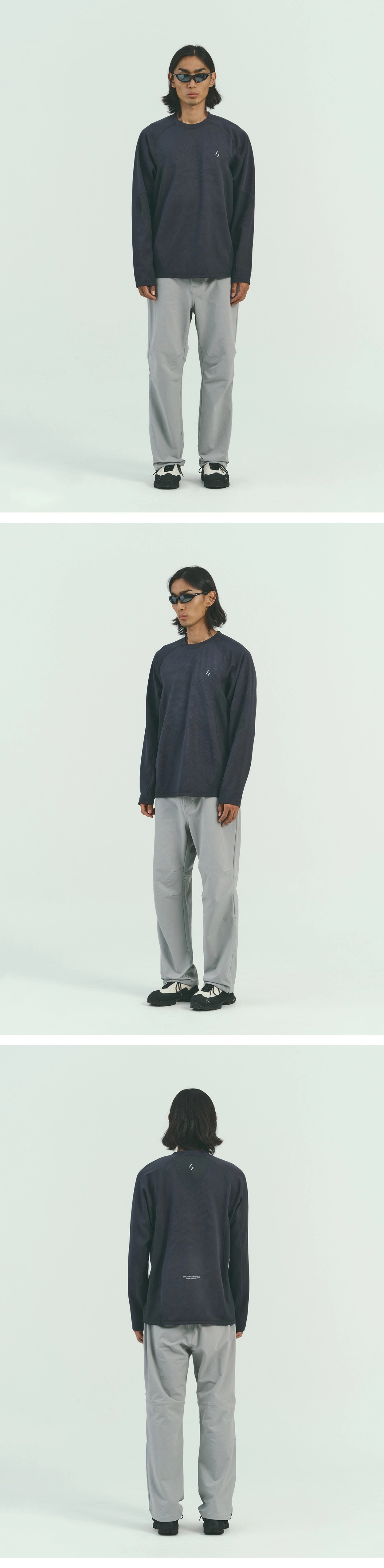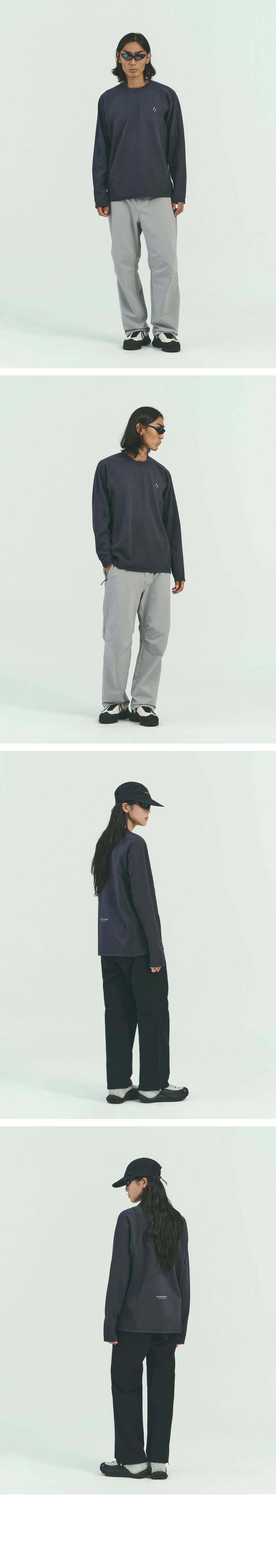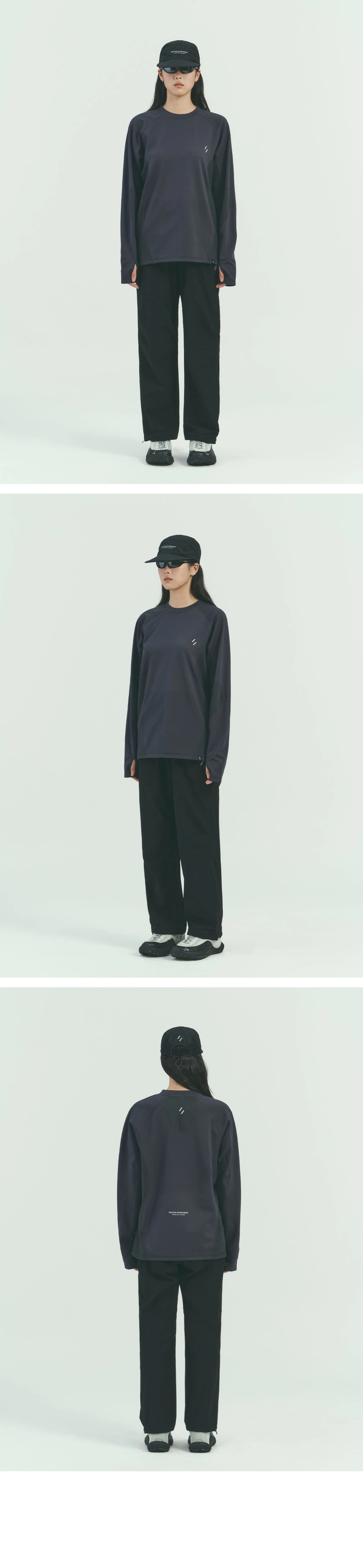 在腋下和手臂內側等易出汗部位,採用較輕薄的非拉絨布料(約 282gsm),以增強透氣性並保持舒適性。