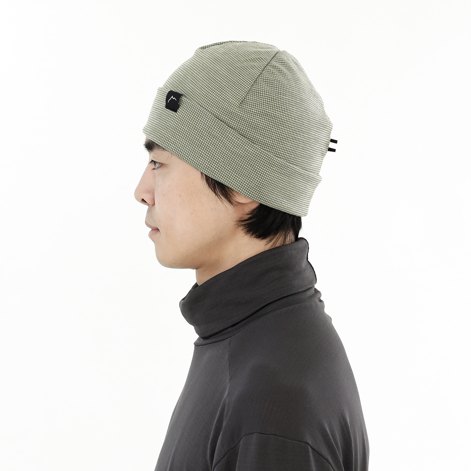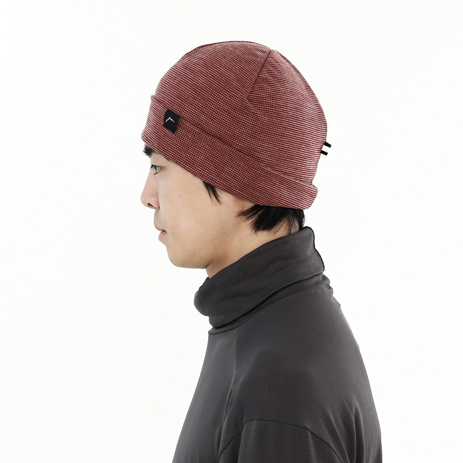 這款針織帽採用羊毛混紡材質製作,透氣性佳且具保暖效果。
