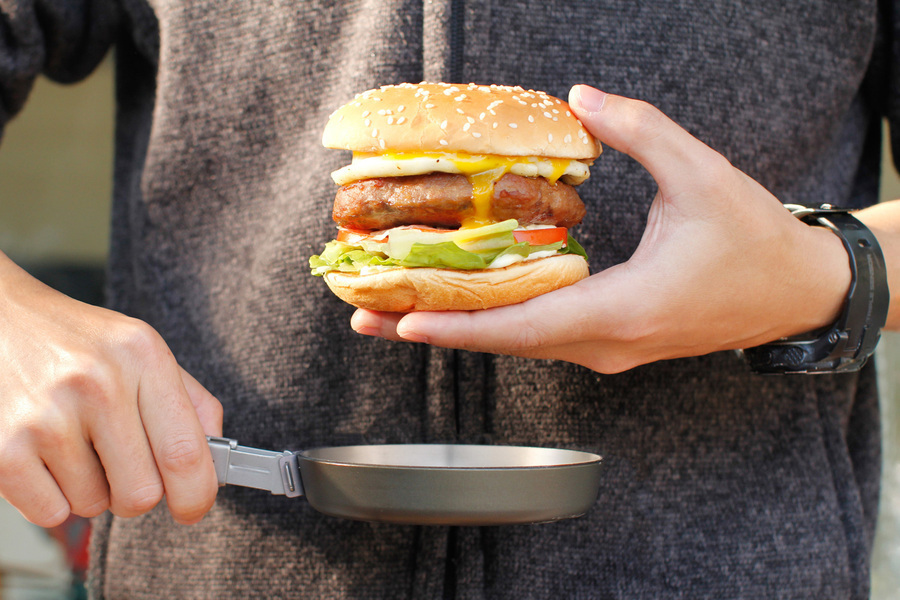 容量尺寸完美搭配一個雞蛋or標準壓制肉餅,迷你一鍋,輕鬆搞定戶外漢堡。