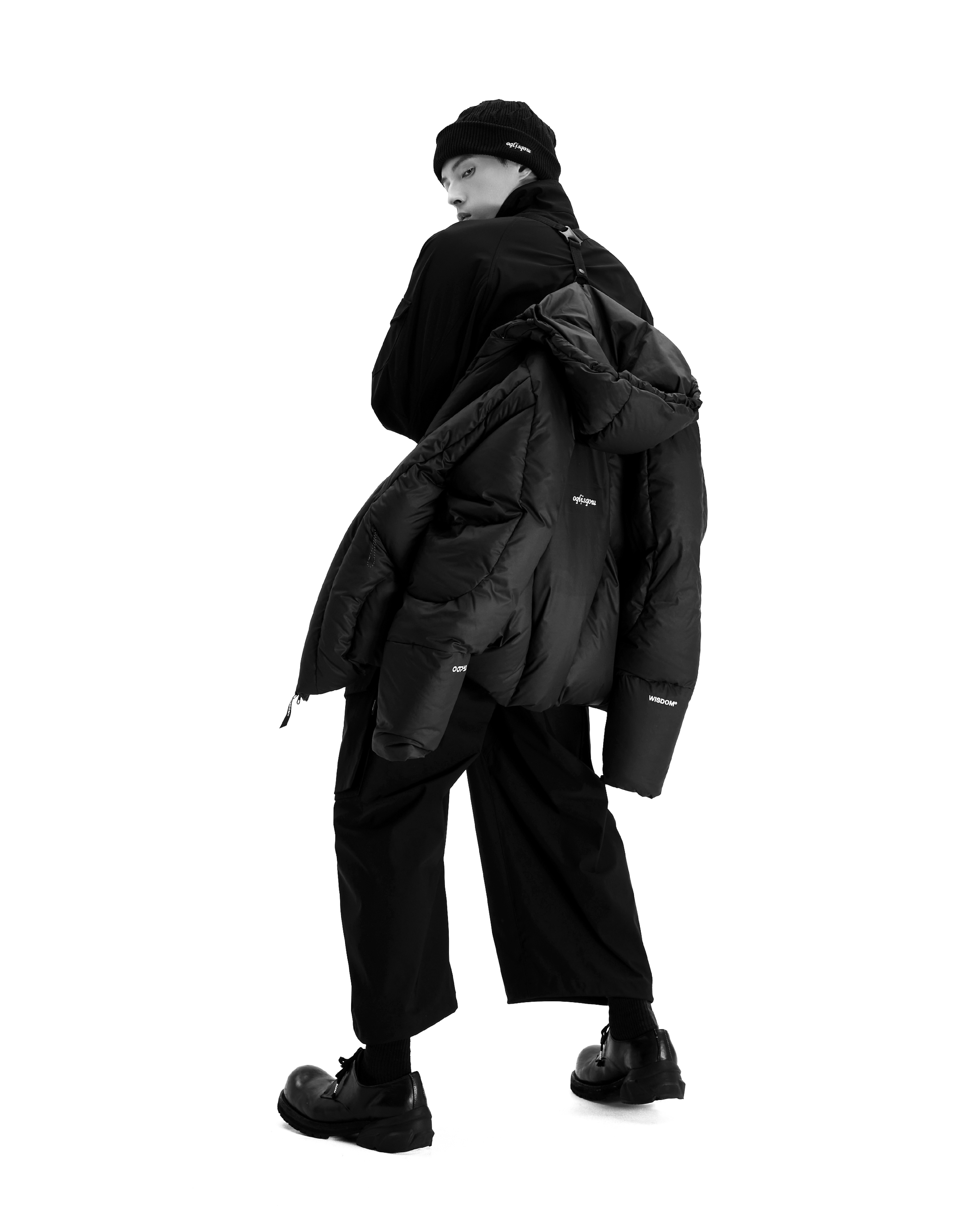也在毛帽與組合包款中加入回收環保材質,落實雙方對於永續的堅持。oqLiq x WISDOM® 本回合作不僅體現出冬季搭配的豐富層次感受,同時也透過鏡像,將彼此對稱與反射,照射出兩