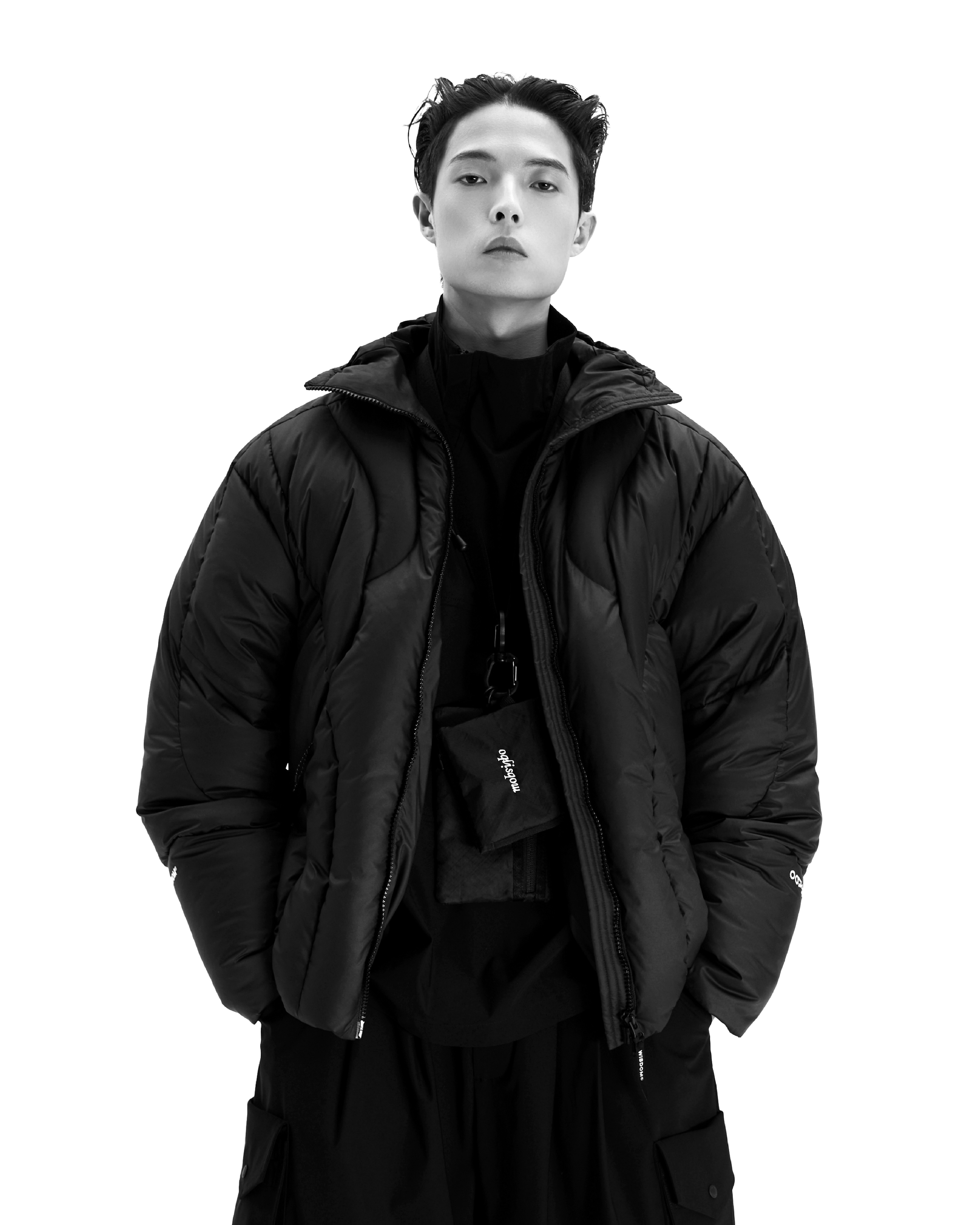 概念與 oqLiq 解構重組設計共融,為本回冬季合作服飾映射出鏡像符號之美。雙方攜手釋出的聯名單品包含注入肌肉紋理與鎧甲線條的保暖連帽羽絨外套、結合防潑水面料的側開襟套